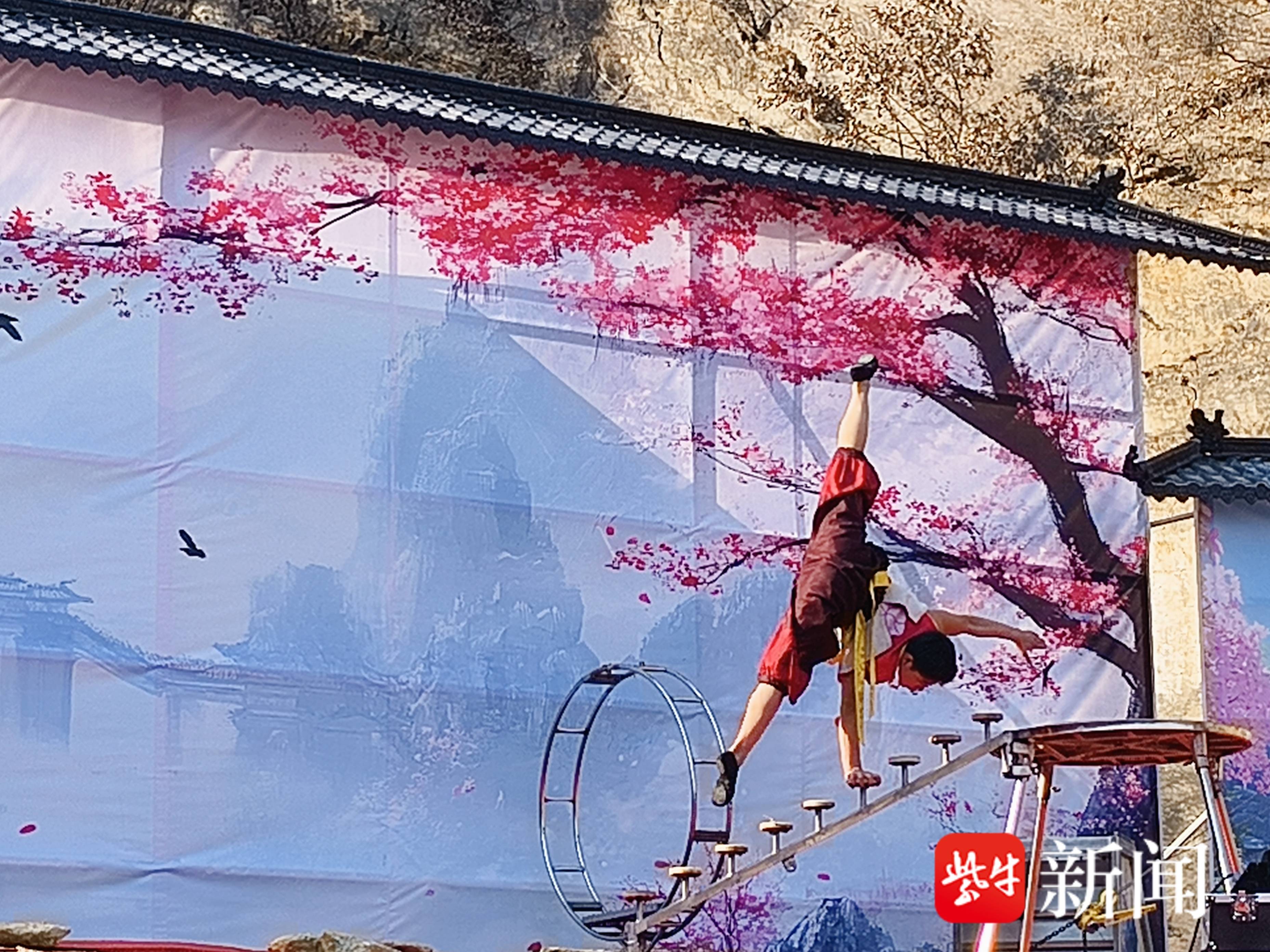 活动期间,好戏轮番上演,精彩目不暇接。来自开封的演艺团队以精湛技艺,将传统非遗的灵动与惊险展现得淋漓尽致。70人专业团队倾情献艺,以大伊山山体为天然舞台,通过高空威亚、飞轮杂技、环球飞车等演绎形式献上核心节目《大伊山・天地回响》,让游客在山水之间沉浸式感受文化魅力,解锁新春视听新体验。此外,上刀山、独竹漂、水上飞人等20余项特色小型演艺项目在山林水岸间循环上演,让游客目不暇接。每日开展的仙侠主题巡游,身着特色服饰的巡游队伍穿行于山水间,与游客挥手互动、送福纳祥,将马年新春的喜庆氛围推向高潮。