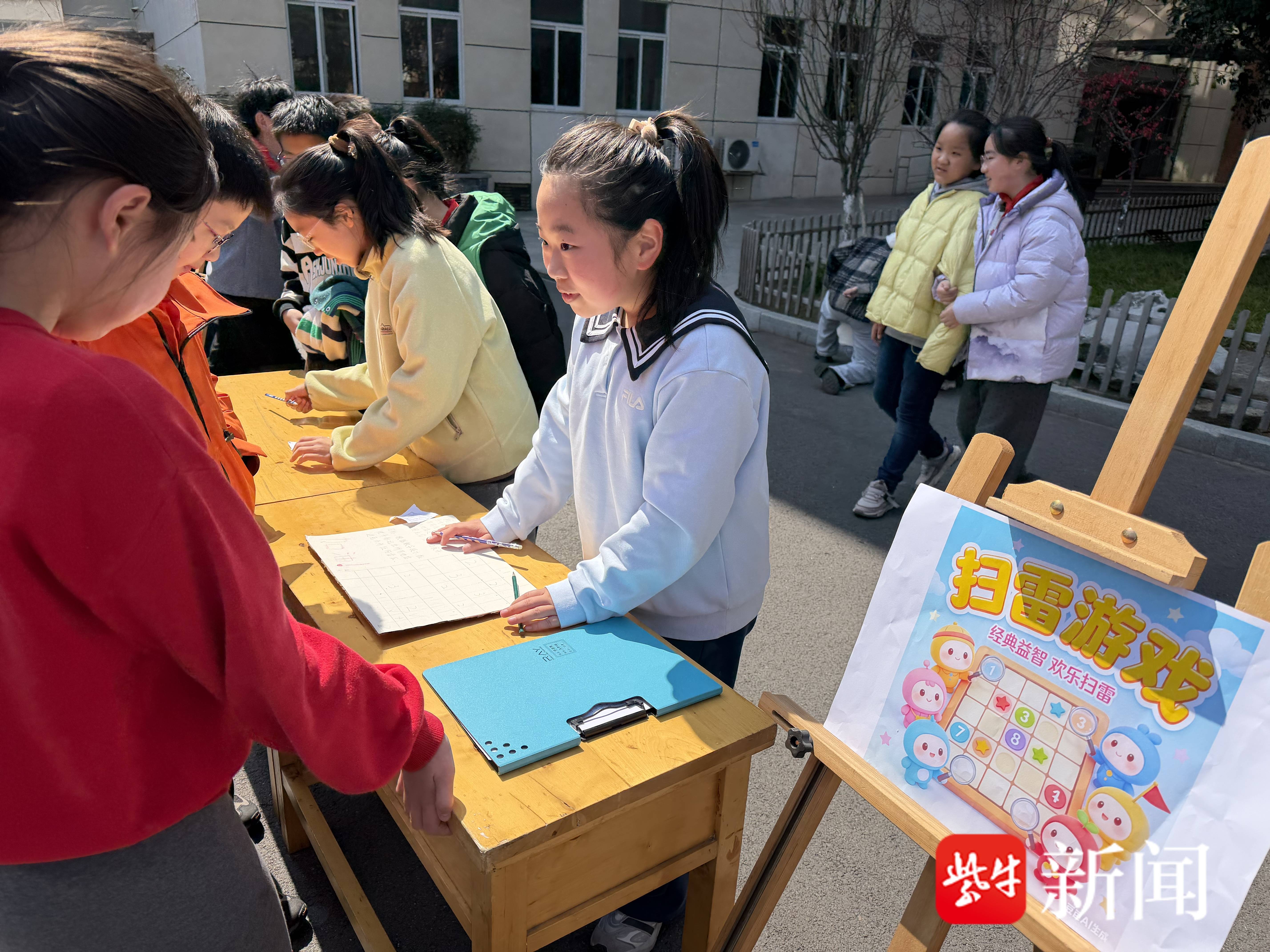除了年级特色活动,备受学生喜爱的数学挑战项目也再度回归并迎来扩容。五、六年级的“数学游戏导师”们精心准备了12个趣味挑战项目,既有去年火爆全场的数字华容道、魔方、九连环等经典项目,也新增了“数学灯谜会”和“π的飞花令”。同学们在挑战中比拼思维速度,感受数学与传统文化碰撞的魅力。