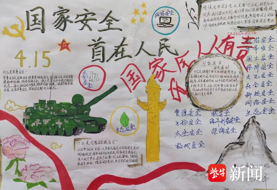 在杨港初中校园内,师生们精心布置了国家安全主题黑板报和宣传展板。大家用笔墨描绘对国家安全的理解,将“国家安全是安邦定国的重要基石”“维护国家安全是每个公民的神圣义务”等标语融入创作之中。一幅幅图文并茂的作品,让每一块展板都成为生动的“国安课堂”,在潜移默化中浸润师生心灵。