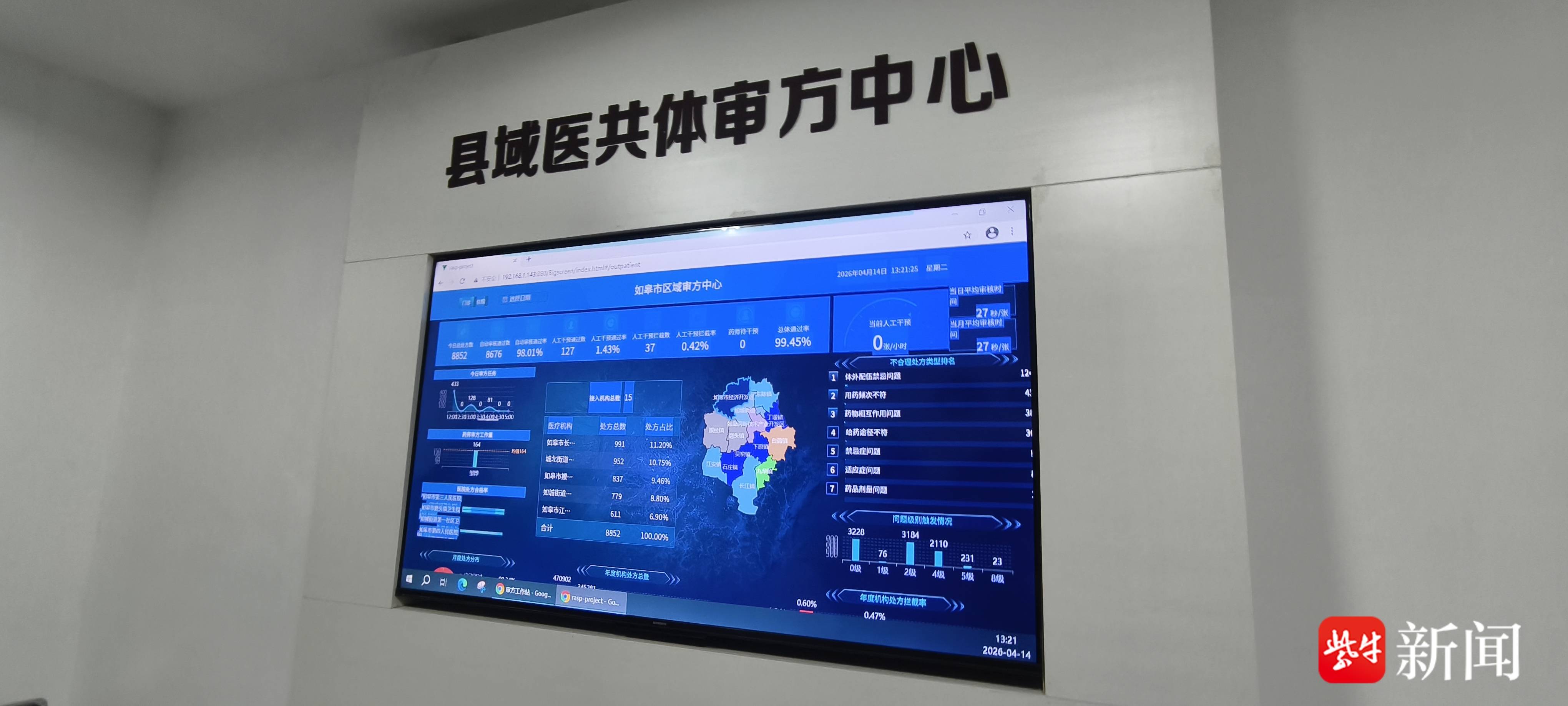在如皋市人民医院医共体审方中心,数字大屏上实时显示着从全市汇总的审方数据,一组组变化的数据背后,是该院依托医共体审方中心,筑起的用药安全防线。针对基层医生易出现的习惯性不合理用药问题,平台可精准识别、实时预警,清晰标注用药隐患,及时提醒医师优化处方、规范诊疗行为。对就诊群众而言,平台从源头守住用药关口,前置拦截风险处方,筑牢群众用药安全屏障,让用药更精准、治疗更高效。与此同时,借助线上药学指导、病例复盘,优质药学服务持续下沉基层,也倒逼药学人员专业能力稳步提升,实现医患双向受益。