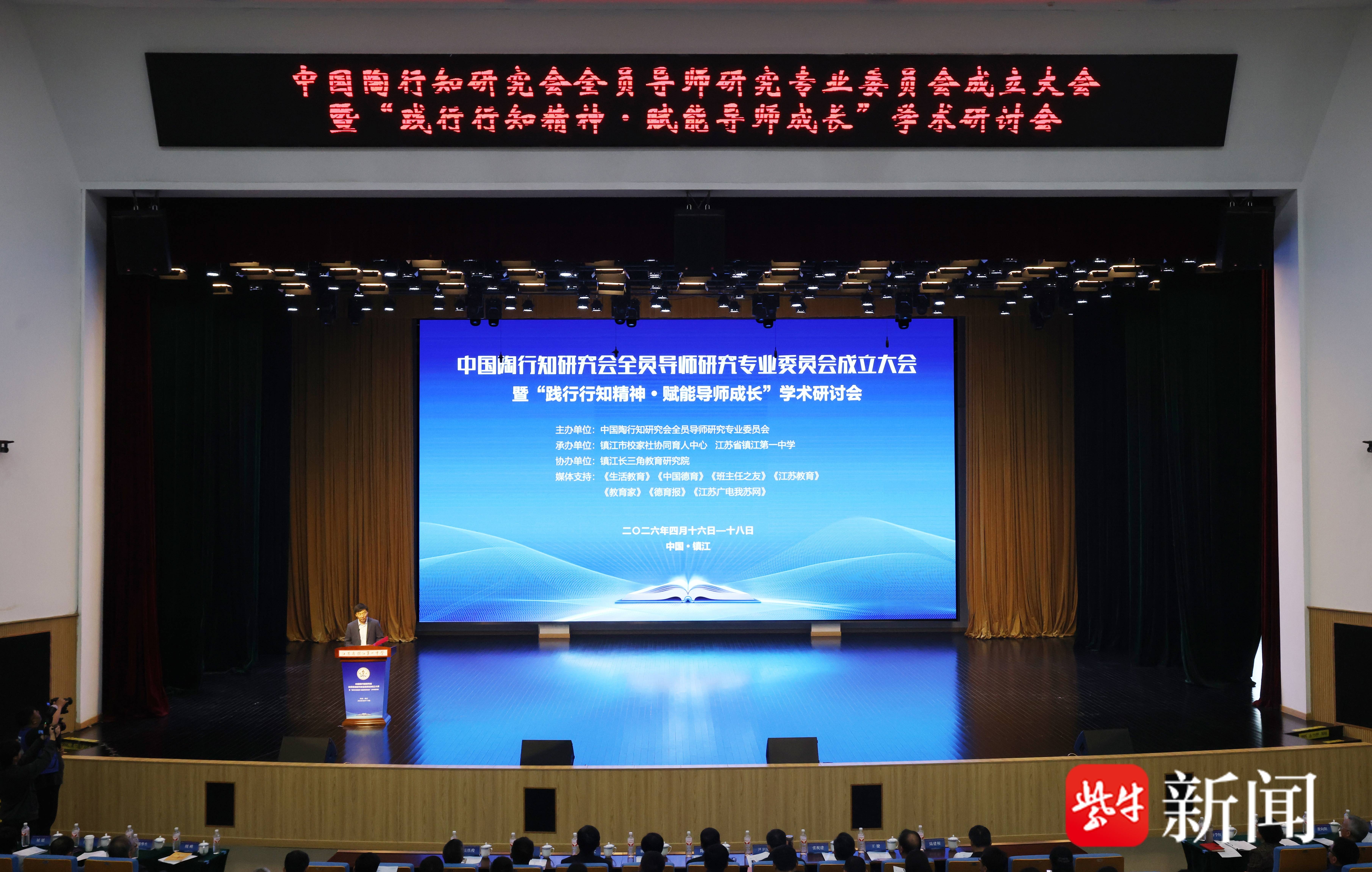 扬子晚报网4月21日讯(通讯员 赵丽娜 记者 万凌云 姜天圣)4月17日至18日,中国陶行知研究会全员导师研究专业委员会成立大会暨“践行行知精神·赋能导师成长”学术研讨会在镇江顺利举办。中国陶行知研究会常务副会长陈洛、副会长顾月华,江苏省教育厅基教处副处长陈斌,镇江市人民政府副市长尹卫民,镇江市教育局局长黄科文、副局长王健等领导出席本次会议开幕式。来自全国16个省份的教育部门相关负责人、中小学校长及教师代表近400人齐聚一堂,共话全员导师制发展与教育育人创新。