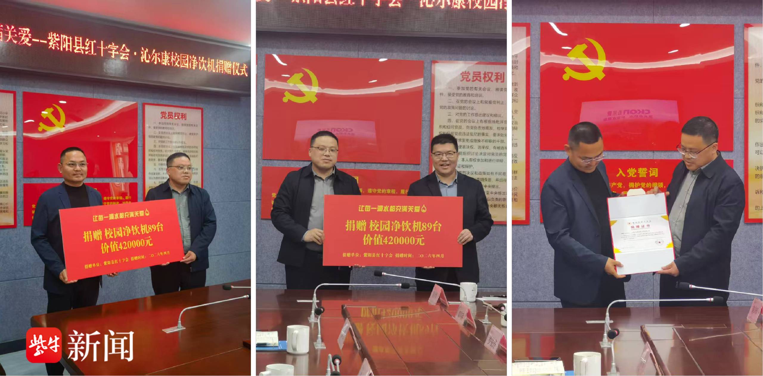 4月21日,“让每一滴水都充满关爱——紫阳中学沁尔康校园净饮机捐赠仪式”在陕西安康召开,江苏沁尔康环境电器有限公司通过红十字会向紫阳中学捐赠89台、价值42万余元的沁尔康校园净饮机,全面覆盖校园饮水点并提供长期本地化运维保障,为全校近5000名师生解决在校饮水问题。