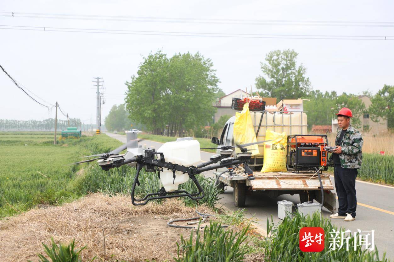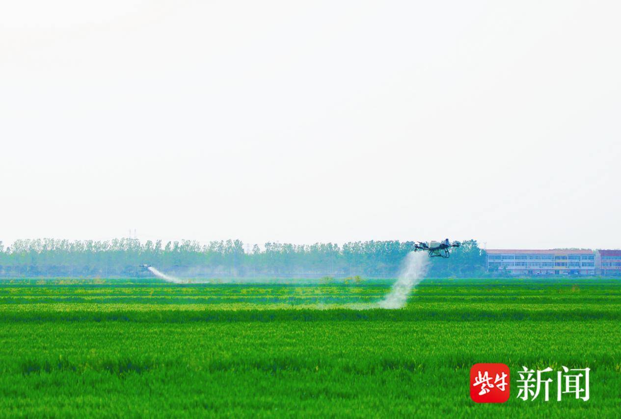 4月21日,海州区岗埠农场高标准农田里,数台植保无人机依次升空、交替作业,将药剂均匀雾化喷洒,一场针对小麦赤霉病的规模化防控全面打响。受今年雨水偏多影响,赤霉病发生流行风险高。岗埠农场全面启用无人机飞防,不到两天便完成1.3万亩早茬口小麦防治。“过去人工喷药一天最多干十几亩,如今无人机一天作业几百亩,效率提高了几十倍。”农场工作人员介绍,一台无人机单日可施药600至800亩,不仅效率高而且相较人工模式减少30%农药用量。搭载多光谱仪器的智慧无人机还能全域巡田,3天即可完成6.4万亩苗情排查。