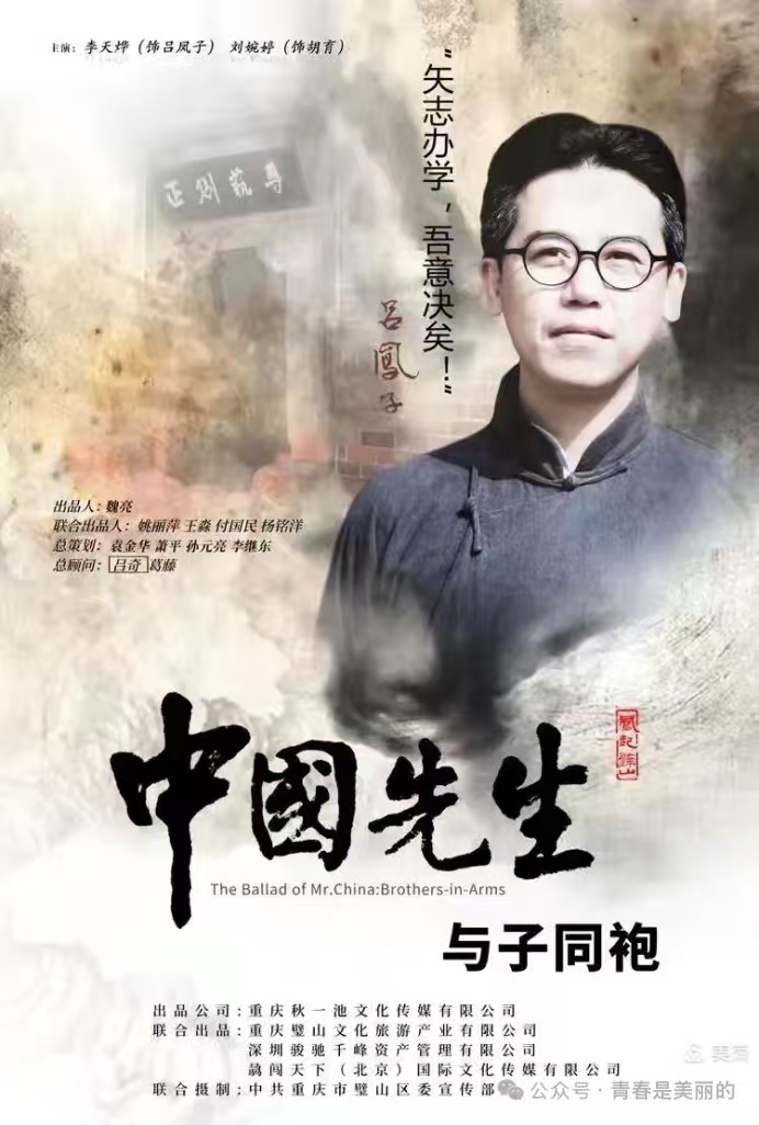 据悉,影片由重庆秋一池文化传媒有限公司出品,中共重庆市璧山区委宣传部联合摄制,演员李天烨饰演吕凤子,目前已通过国家电影局审核并正式取得公映许可证。影片以“与子同袍”为主题,生动讲述了抗战时期吕凤子与师生、璧山人民同心协力、坚守办学的感人故事,真实再现了文化抗战背景下,一代教育家的风骨与担当。