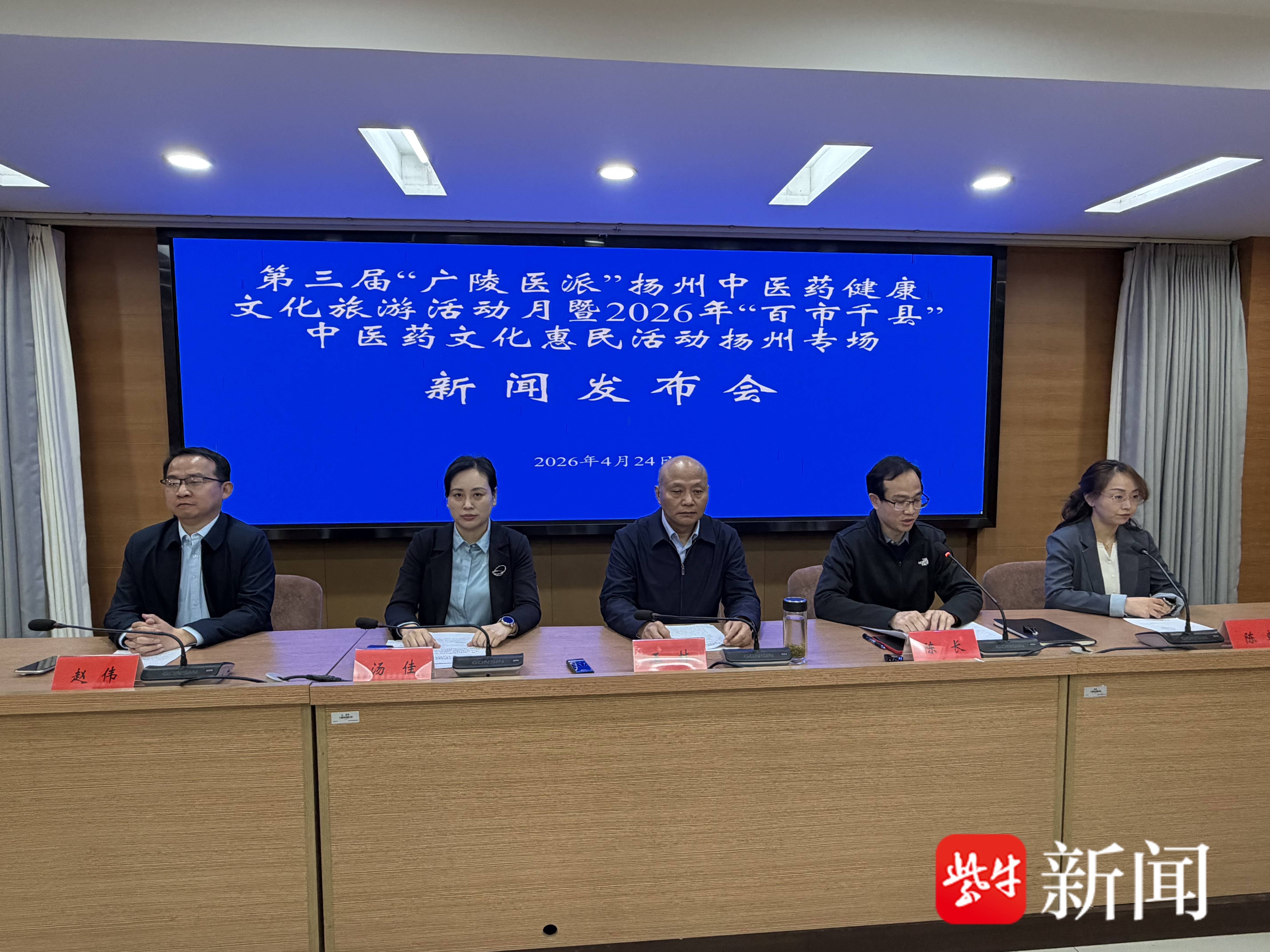 扬子晚报网4月24日讯(记者 成沫)为持续擦亮中医药文化名片,响应国家“百市千县”中医药文化惠民号召,扬州市将于2026年4月25日(星期六)上午8:30,在扬州市中医院真州路院区举行第三届“广陵医派”扬州中医药健康文化旅游活动月暨2026年“百市千县”中医药文化惠民活动扬州专场开幕式。4月24日上午,扬州相关部门就该活动举行了新闻发布会。