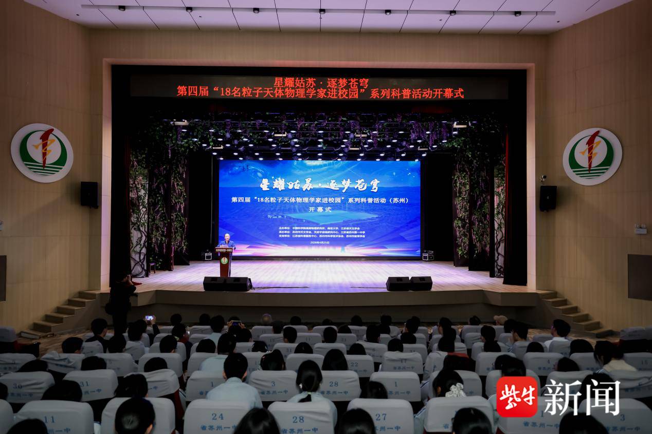2026年4月25日下午,第四届“18名粒子天体物理学家进校园”系列科普活动启动仪式在江苏省苏州第一中学举行。本次活动以“星耀姑苏・逐梦苍穹”为主题,依托同期在苏州召开的2026年LHAASO合作组第一次会议,汇聚国内外粒子天体物理领域顶尖专家,将前沿科学火种播撒姑苏校园,点燃青少年探索宇宙的科学热情。本次活动由中国科学院高能物理研究所、南京大学、江苏省天文学会联合主办,苏州市天文学会、天府宇宙线研究中心承办,江苏省科普服务中心、苏州市科学技术协会、苏州市教育学会共同支持。