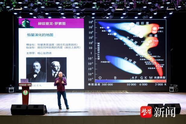 启动仪式后,南京大学天文与空间科学学院研究员、博士生导师、天文学系主任柳若愚带来首场重磅科普讲座——《恒星的旅途,我们的来处》。柳若愚研究员以生动通俗的语言、趣味化的讲解,为现场300余名高一、高二学生揭开恒星演化的神秘面纱,讲述恒星从诞生、成长到落幕的完整历程,将深奥的天文知识转化为易懂好学的科普内容,现场互动热烈、掌声不断。