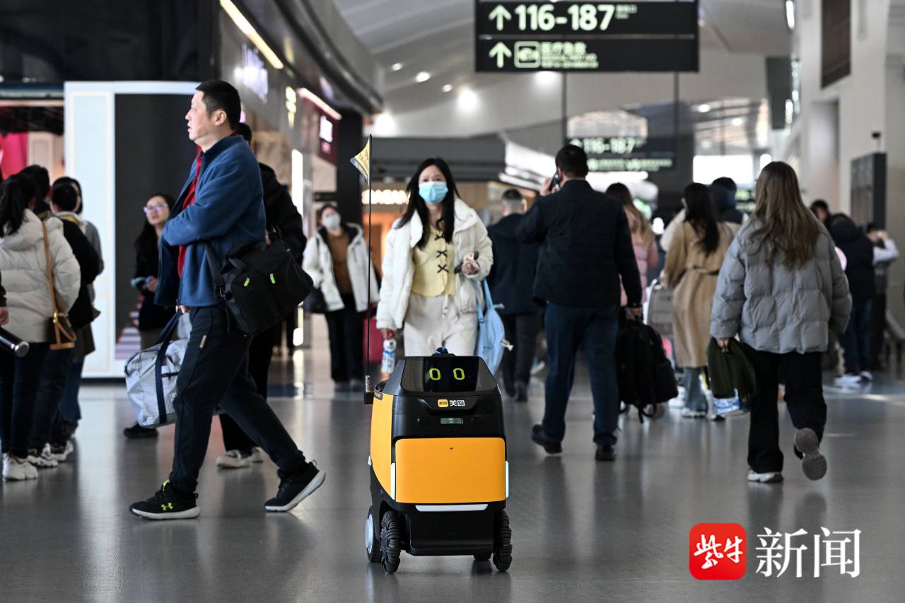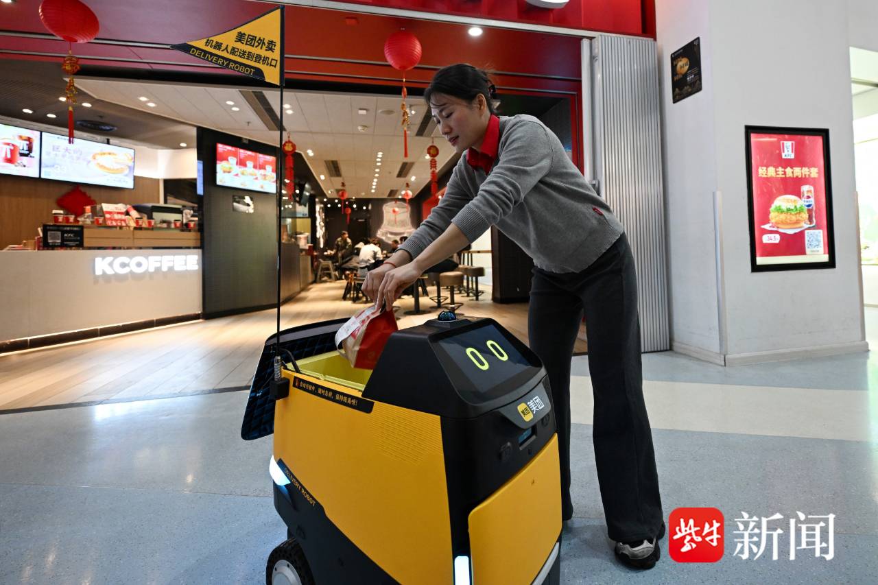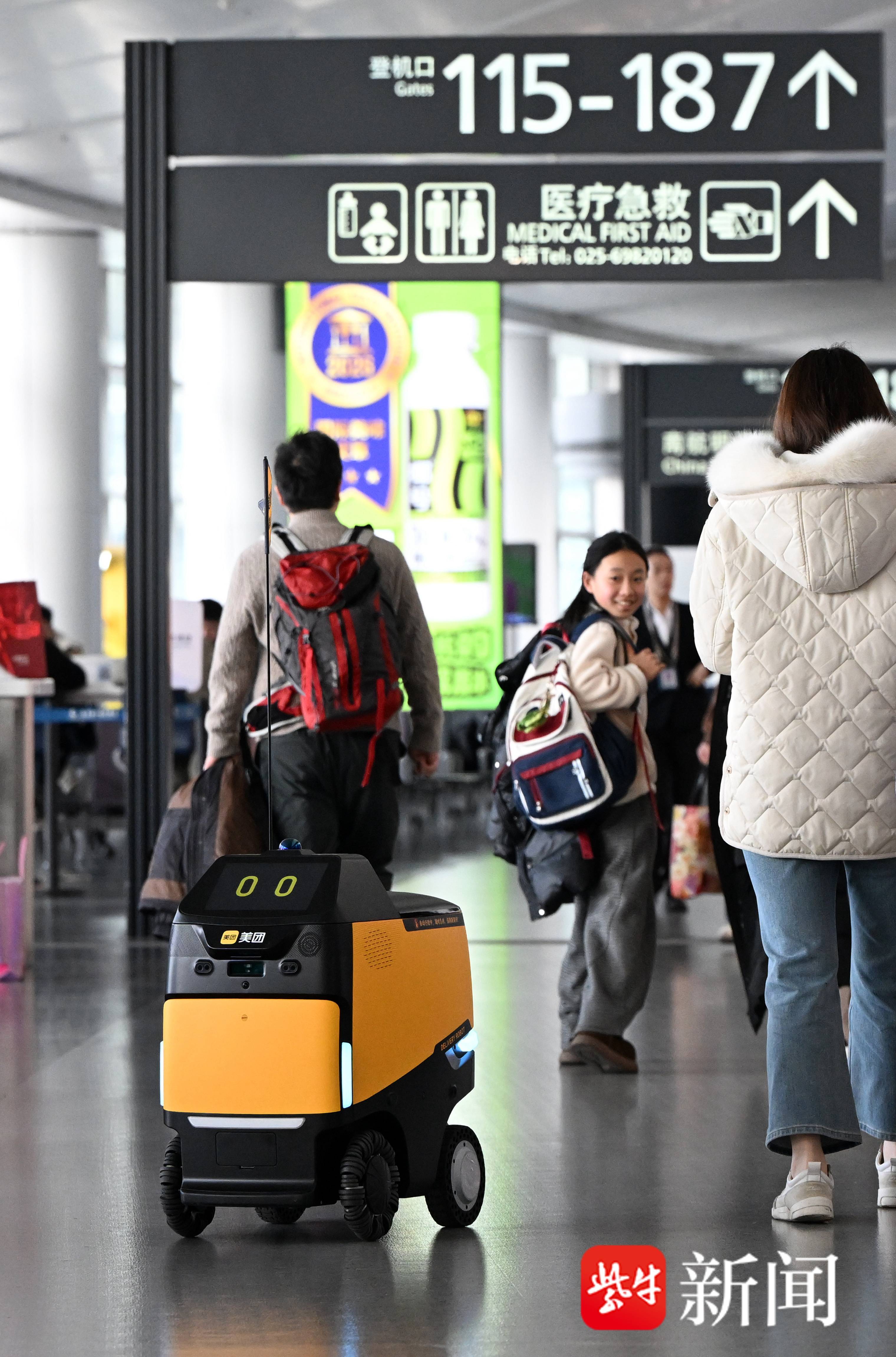华东首家!“小黄蜂”上岗南京禄口机场,春运旅客在登机口也能“点外卖”