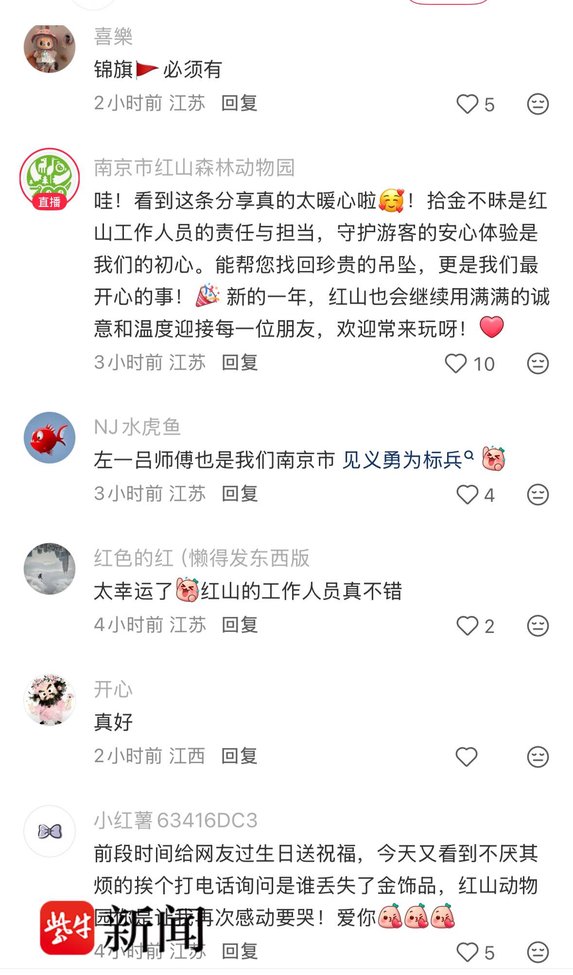 “南京很暖,下次我还要再来!”红山动物园新春上演真·拾“金”不昧,游客感动发帖……