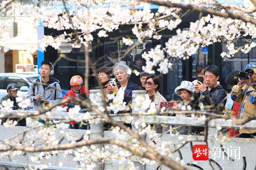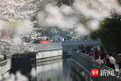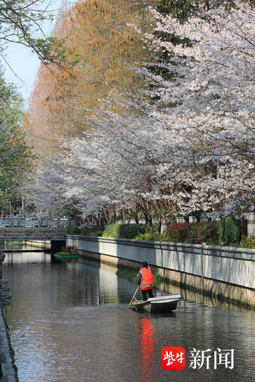 扬子晚报网3月25讯(通讯员 徐福庚 记者 闫春旭)阳春三月,春意盎然。南京太平北路珍珠湖畔樱花争艳,吸引了不少游客和市民前来打卡游玩。沿珍珠河近500米的樱花带如粉白的丝带蜿蜒舒展,层层叠叠的花瓣挤在枝头。不远处,保洁工人划着小船缓缓而来,手中的网兜轻轻探入水中,将散落的落叶一一打捞。小船划过水面,而河水依旧澄澈,樱花依旧盛放,唯有工人专注的身影,为这幅唯美画卷添上了一抹烟火气的温暖。