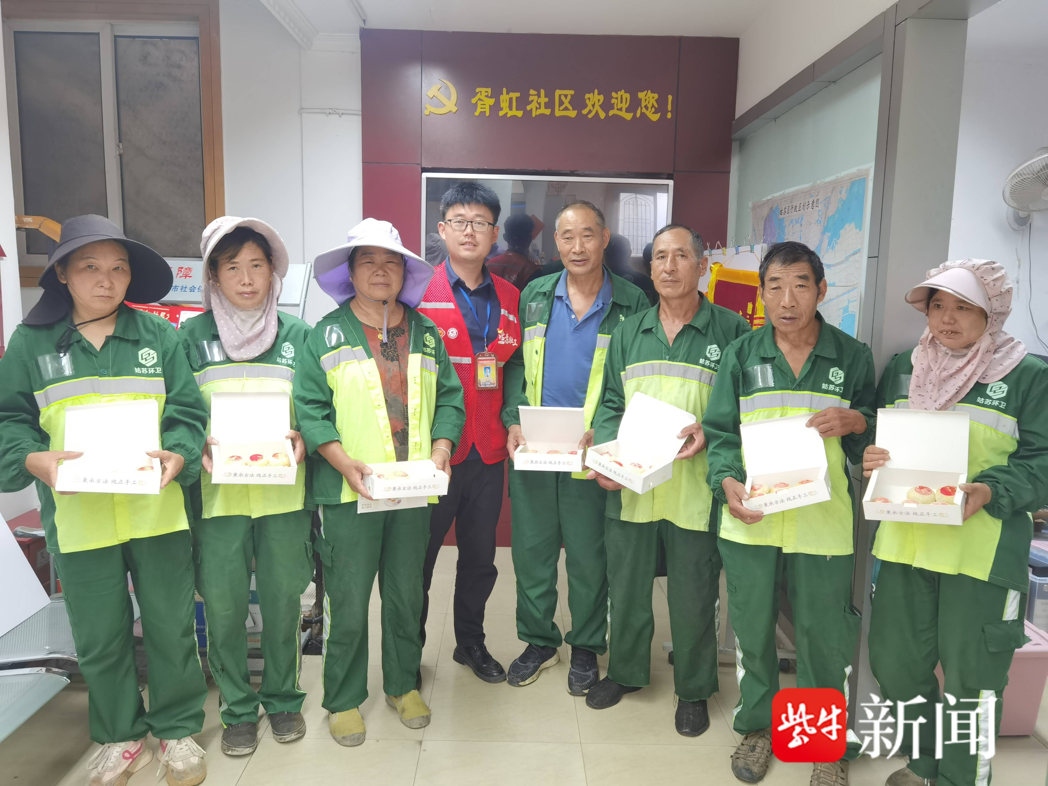 环卫工每天起早贪黑,为维护城市的整洁付出了大量的汗水。志愿者们将月饼送到他们手中。环卫工人张师傅接过月饼,笑着说:“虽然工作辛苦,但收到社区送来的月饼,心里特别暖和,感觉所有的累都值了。”