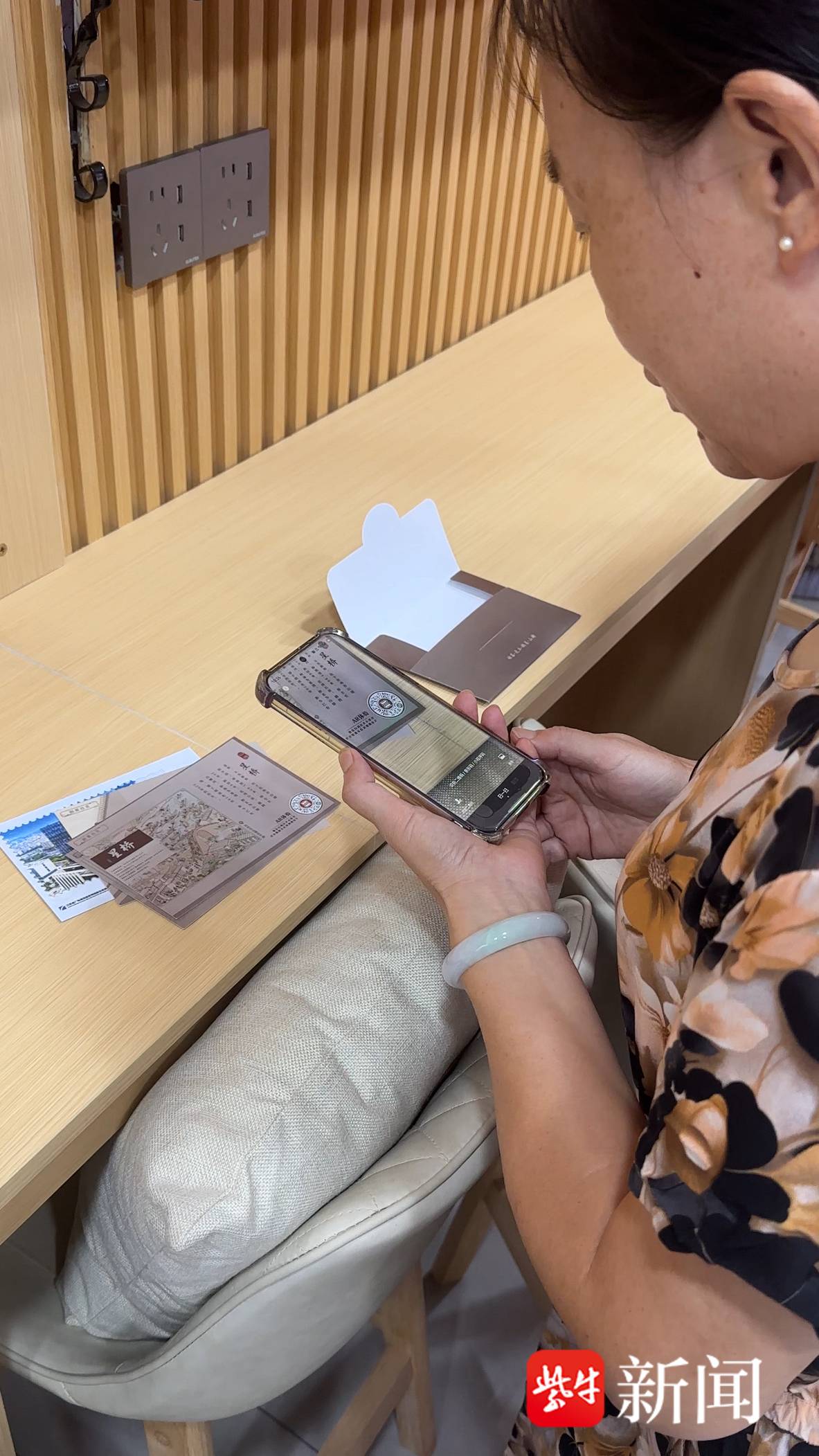 正在挑选明信片的游客杨女士,手里拿着两张卡片反复比对,脸上满是惊喜:“我第一次见这样的明信片,既能收藏又能听故事,太特别了!”她笑着说,打算买一套送给没来过山塘街的朋友,“对方扫码就能‘云游览’,还能同步了解人文历史,这种方式特别有意义。”