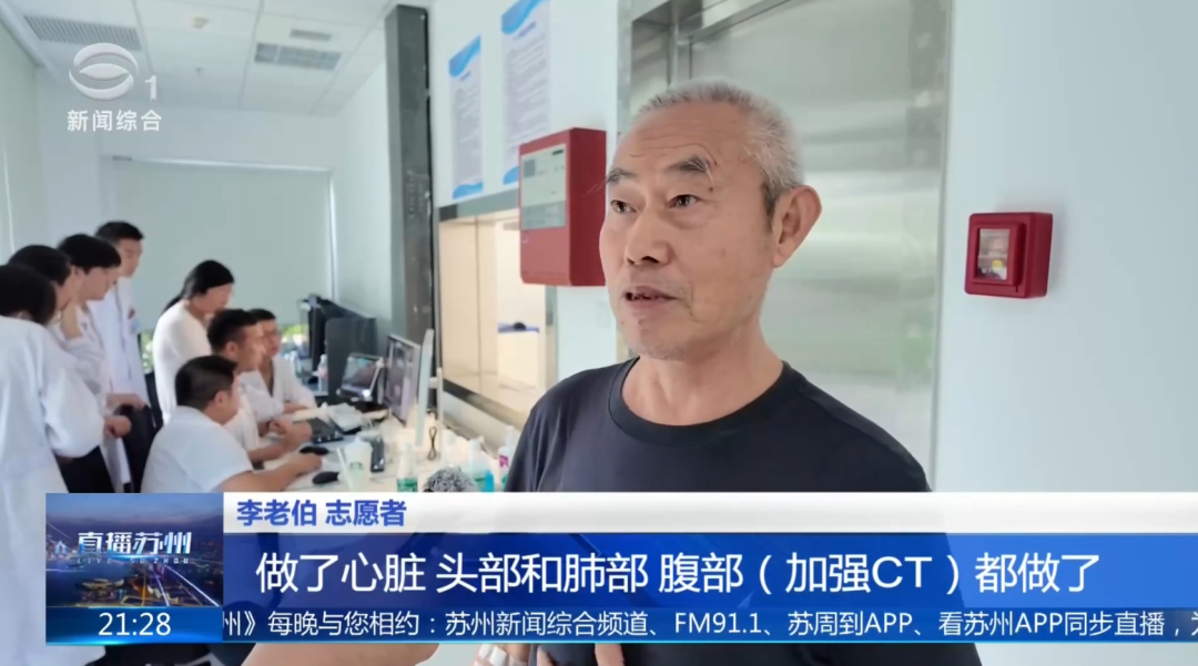 在内测试运行阶段,也有市民作为志愿者来到医院,配合医护团队测试设备、演练流程。志愿者李老伯表示:“心脏、头部、肺部、腹部加强CT都做了,我认为这一次检查很详细了,体验很好。”