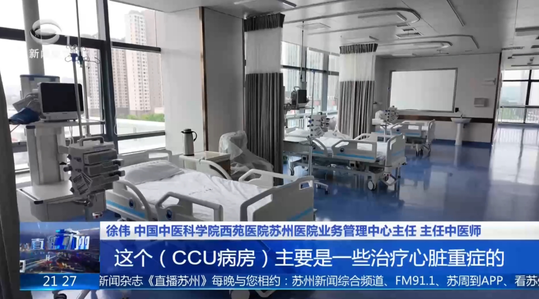 中国中医科学院西苑医院苏州医院业务管理中心主任徐伟介绍:“心血管科是我们跟中国中医科学院西苑医院合作的重点,CCU病房主要治疗一些心脏重症,包括心梗、急性心衰。”