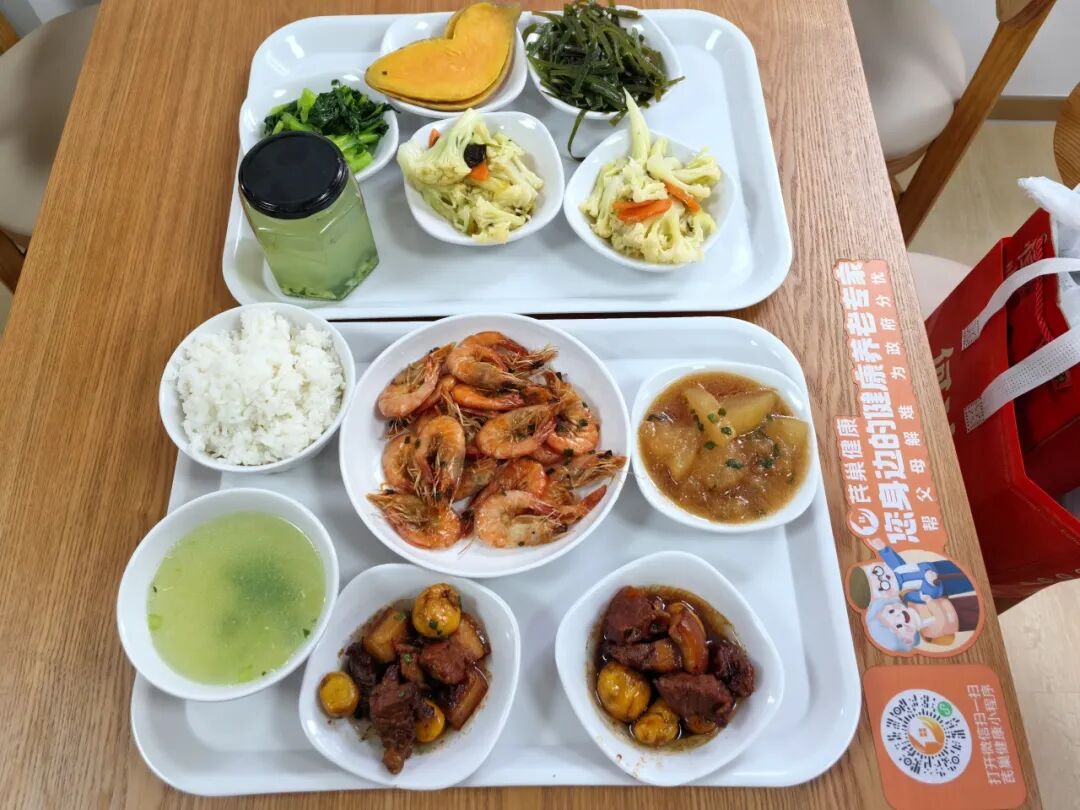 菜品与服务时段设计贴心。餐厅设早餐、午餐时段:早餐有手工面点、粥品、鸡蛋等;午餐含家常菜与特色餐,严守“软糯可口、低糖低盐低油”标准,兼顾牙口不好或有基础病老人的需求。