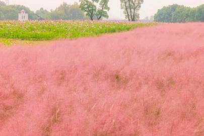 还有备受瞩目的粉黛乱子草,也是秋日游园的一大看点,细密的花穗呈朦胧的粉紫色,像被风吹散的云朵落在草地上。