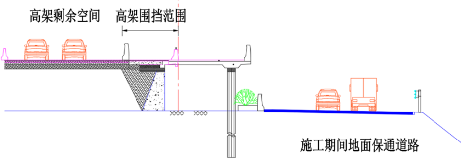 (一)施工期间占用南向北方向高架主线最右侧机动车道,利用剩余两车道通行;