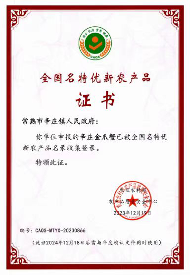 历史的回响,今日仍在延续。2023年,农业农村部发布《全国名特优新农产品名录》,“常熟辛庄金爪蟹”赫然在列,正式加冕“国字号”荣誉,成为对品质的权威认证。