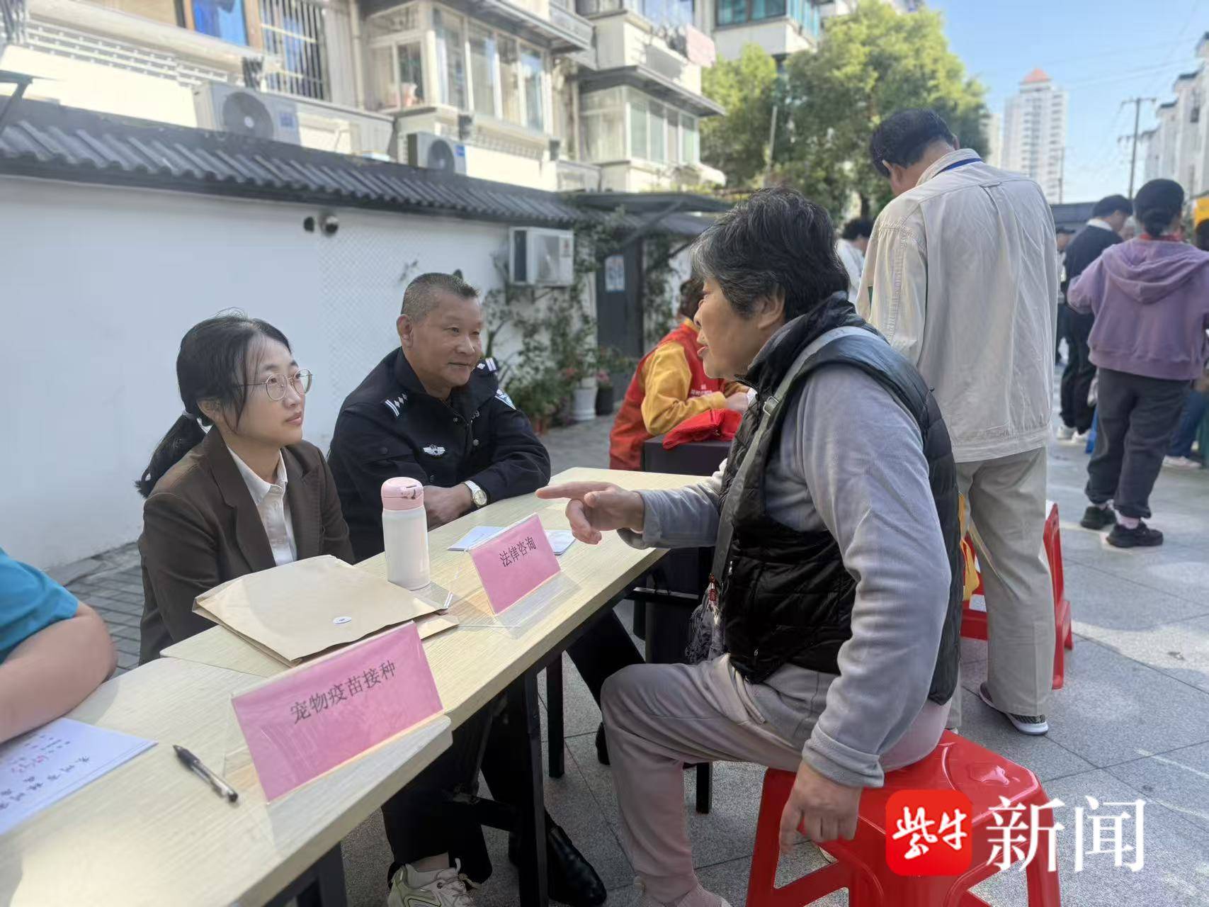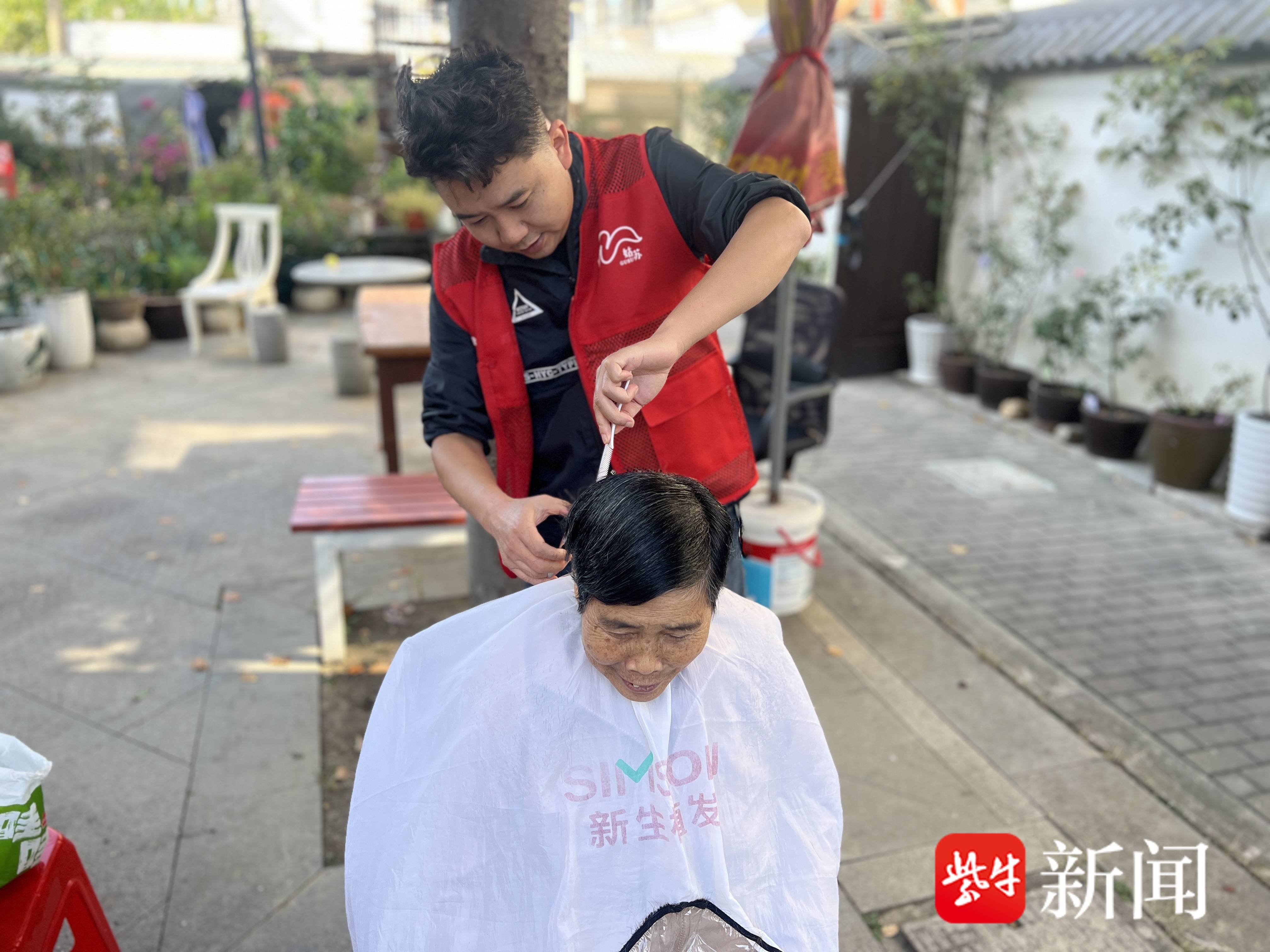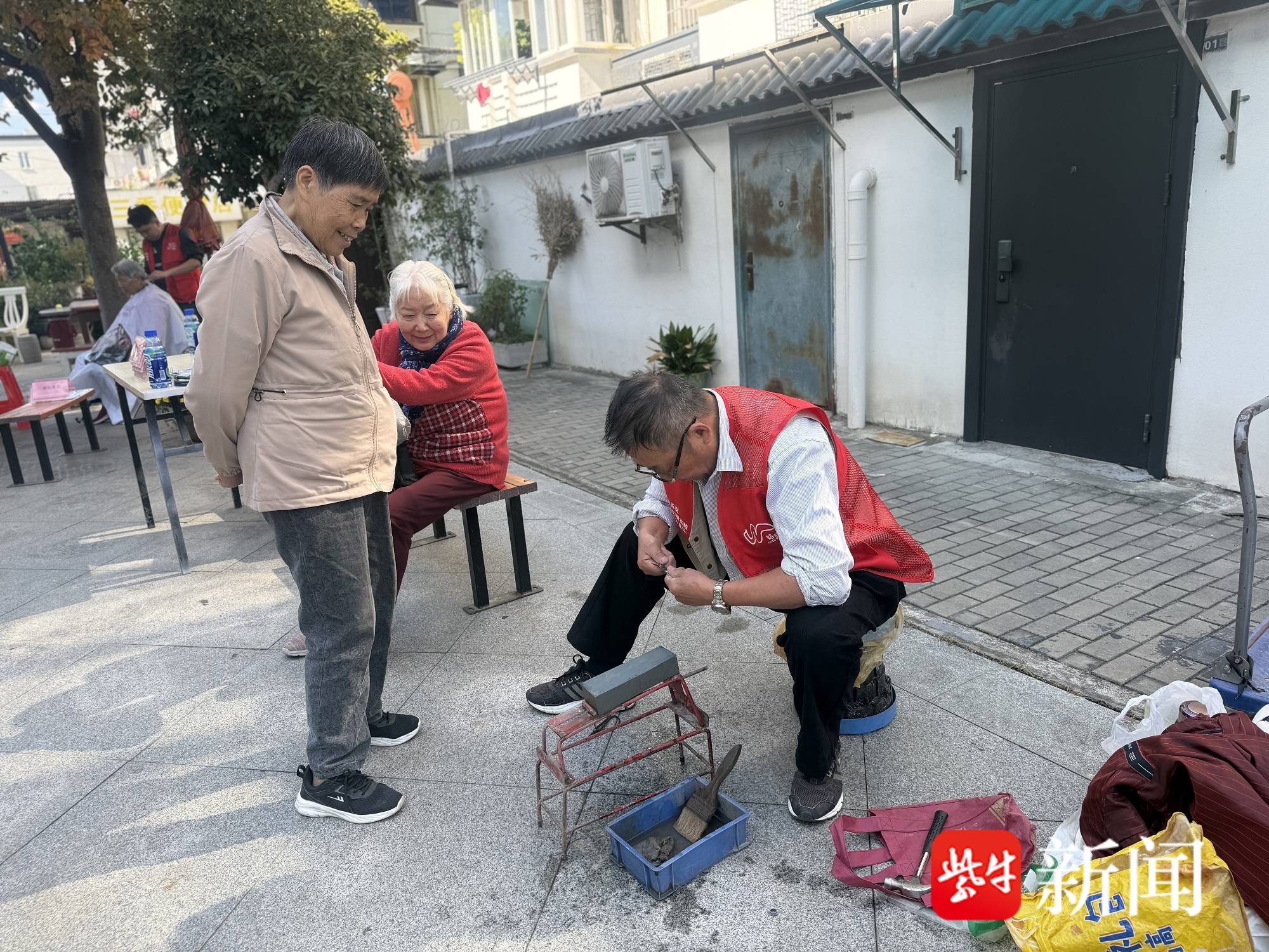 10月29日重阳节,苏州姑苏区三香新村13幢小游园排起温馨的长队。宠物疫苗注射点前,年轻人牵着狗狗有序等候,兽医一边注射一边讲解养护知识;隔壁理发摊位上,银发老人享受着志愿者的精心修剪,碎发飘落间眉眼舒展;磨刀老师傅的砂轮声与居民们的家常话交织成趣,一把把菜刀重现锋芒。这些看似平常的服务,正是三香社区党委精准对接居民需求设立的“民生微实事”项目。