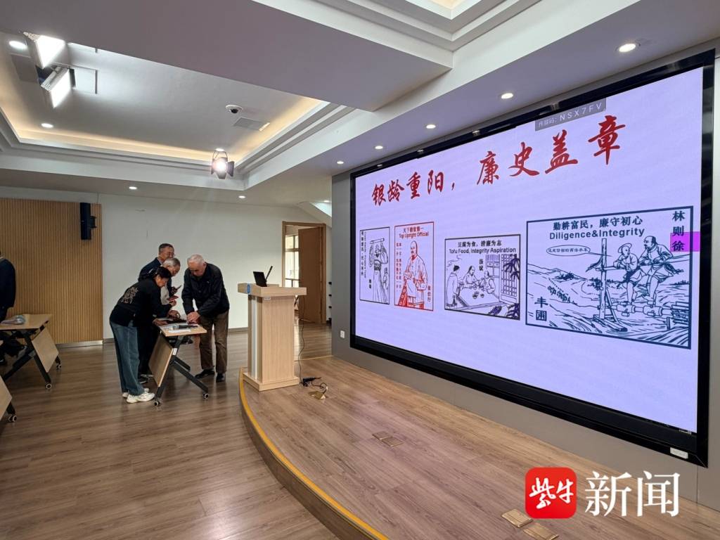本次活动所在地——学校书院校区,亦是江苏省巡抚衙门旧址与省级廉政教育示范基地。今年的课程中,学习中心特别设计了以汤斌、海瑞、林则徐、张伯行四位清代廉吏为形象的双语文化章。保健课结束后,老人们踊跃参与盖章体验,在历史氛围中回望峥嵘往昔,更加珍惜今日幸福安康的生活。
