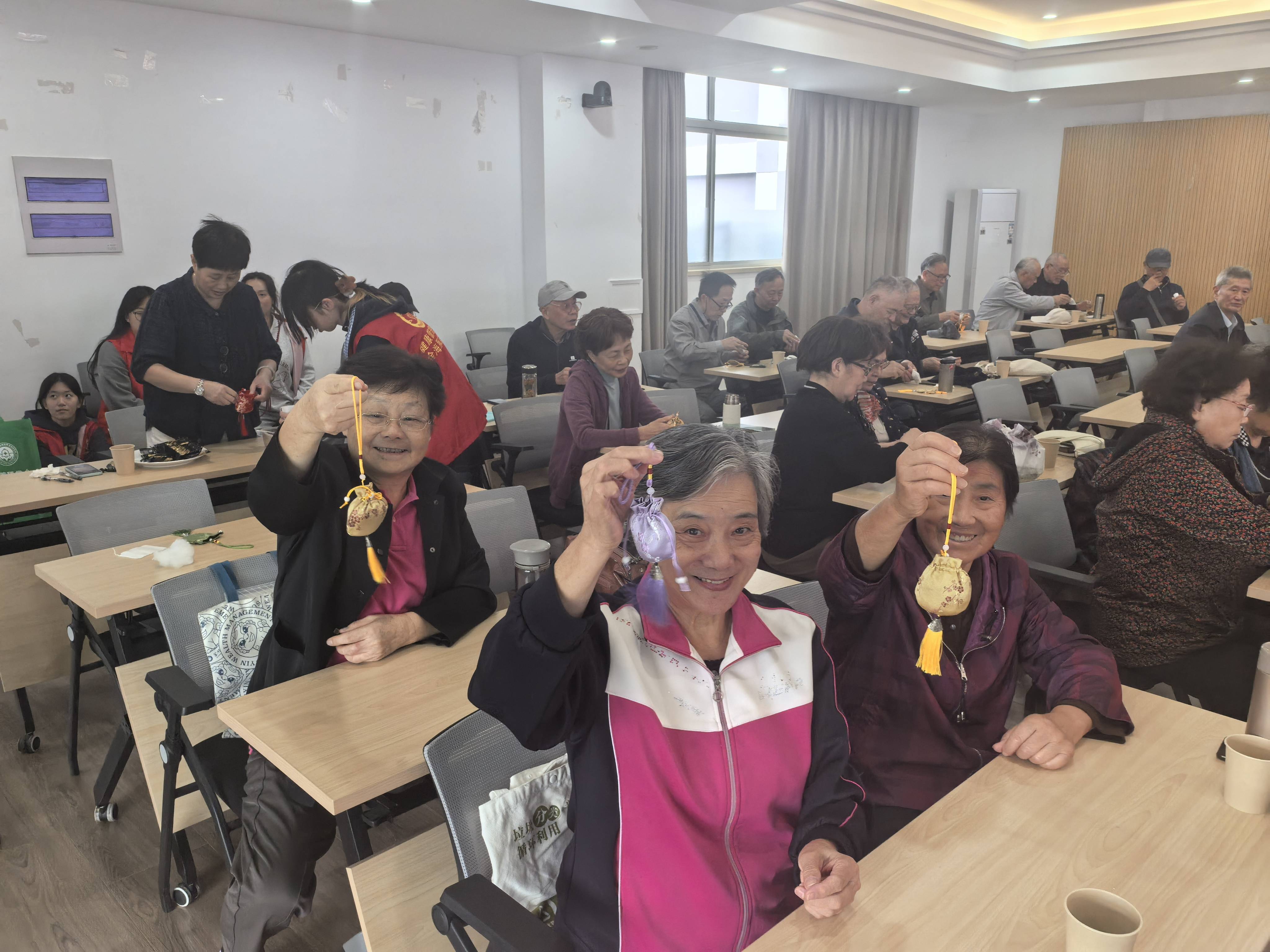 10月28日,临近重阳佳节,在苏卫银龄学习中心,苏州卫生职业技术学院吴芝园老师以“茱萸菊花香、重阳享安康”为主题,为苏州健康学会的老年朋友们带来了一堂生动实用的秋冬保健课。课程内容涵盖秋冬季流感预防措施、虫草及人参等常见滋补药材的鉴别技巧,并重点讲解了“滋阴润燥”“温中防寒”等中医养生要诀。现场还带领大家亲手制作了具有驱风邪、防瘟疫功效的茱萸菊花药锤,活动寓教于乐,深受老年朋友们的欢迎与喜爱。