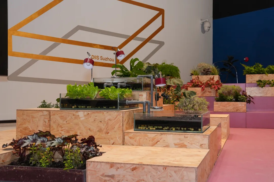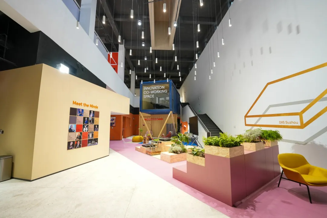 目前,位于苏州御窑金砖博物馆内的DIIS苏州已经完成设计装修。步入其中,除了路演厅、办公区、共享办公位等基础配置外,还有布满设计工具的共享设计区,以及随处可见的生态造景与创意装扮。“我们把设计的鱼塘、菜地等生态造景,和一个集装箱改造的会议室都搬进了博物馆内,希望能为来此工作的年轻设计师们提供良好的工作环境,和随时能动手制作的共享区域。我们的初衷就是服务于上海与苏州的企业、政府、年轻人,整合资源为城市发展发挥更大的作用。”余昊源说。