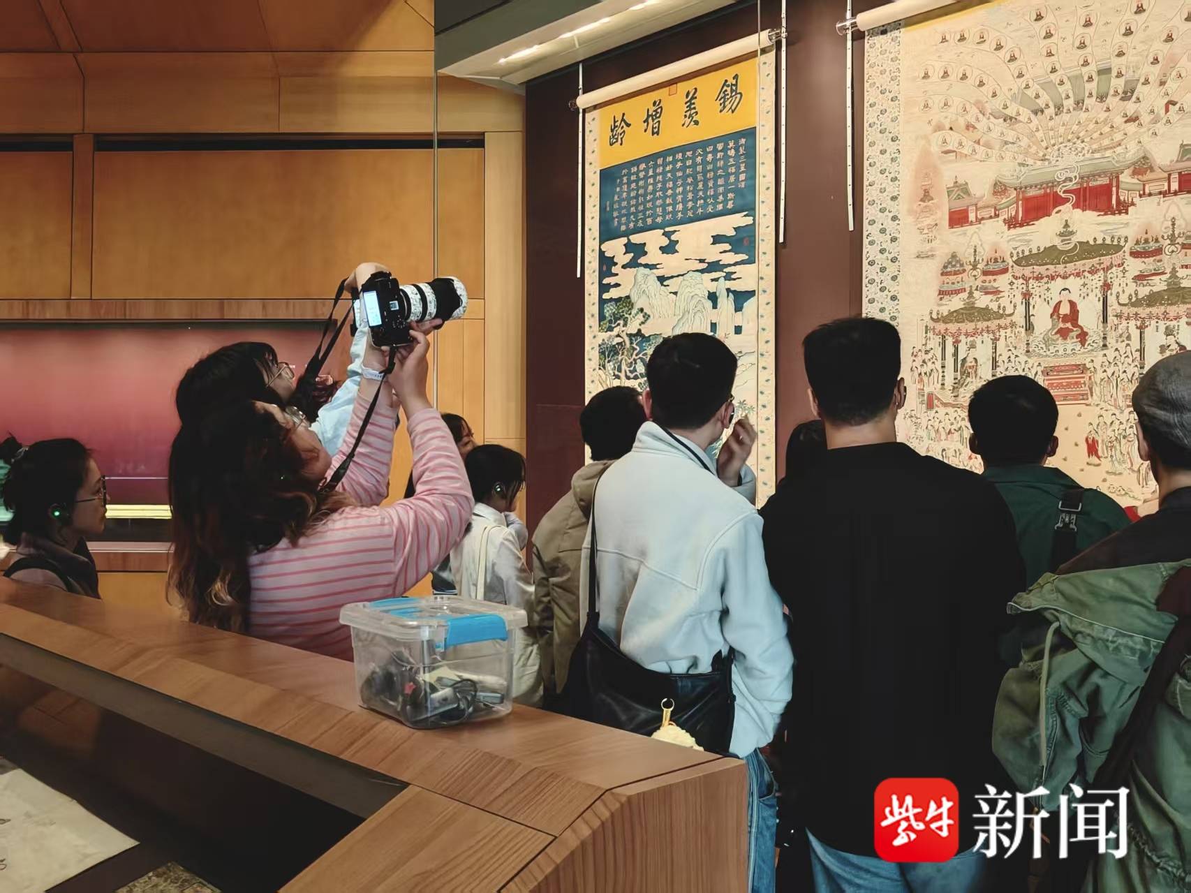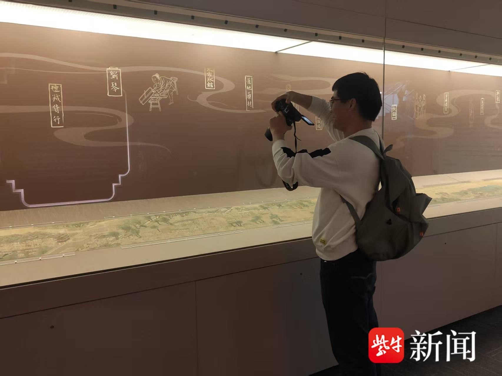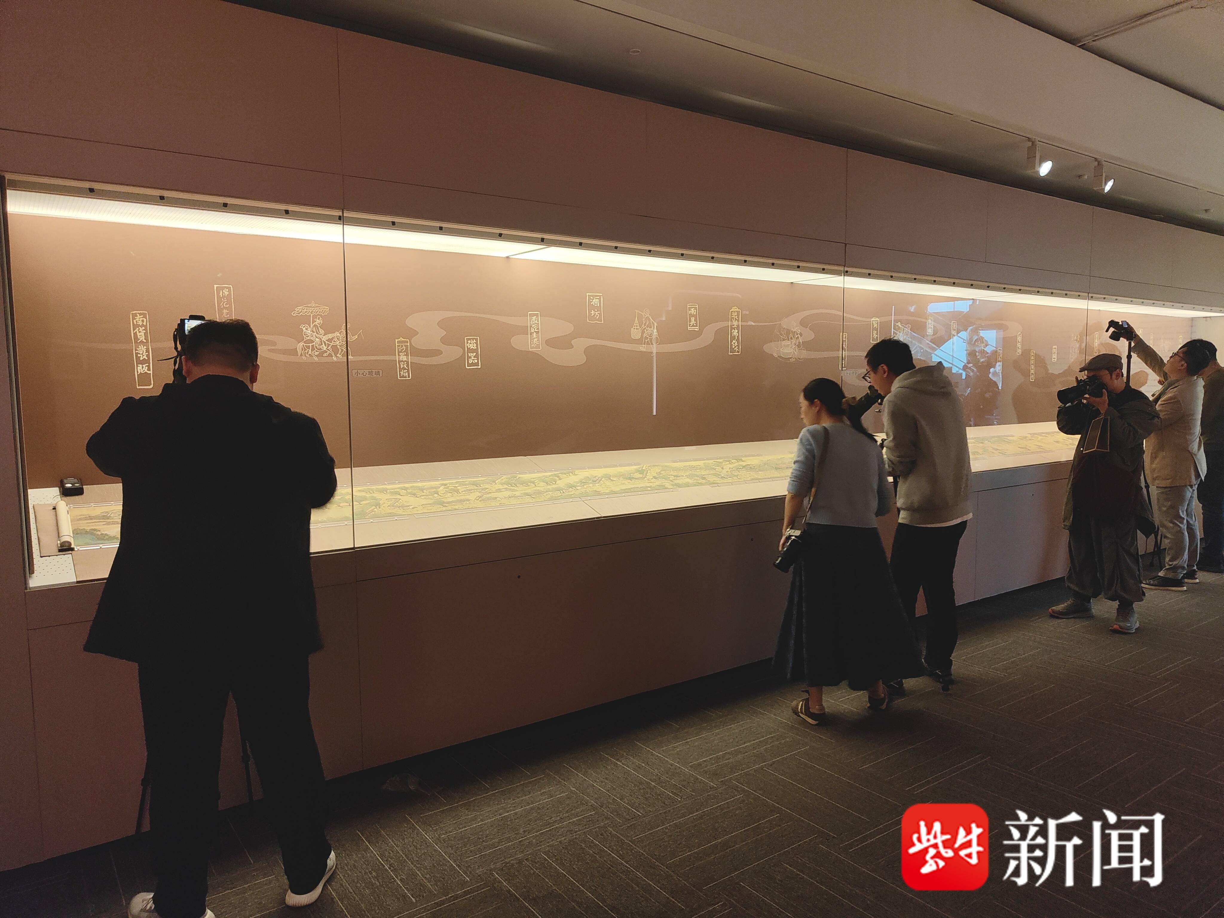 记者看到,苏州博物馆展厅内,《清明上河图》(仇英本)长卷在展柜中徐徐展开,沿着玻璃长柜缓步向前移动,目光在密集的市井场景中流连——虹桥上车马往来,运河中舟楫穿梭,街市上商贩叫卖。画面一角,几个孩童蹲在树下斗草,神情专注,姿态各异,为繁华的城市图景增添了几分生活意趣。策展人杨宇萌说:“这幅作品生动再现了当时‘红尘一等繁华地’的城市图景,是理解明清苏州商业与手工业繁荣的重要视觉文献。”专程从北京坐车前来观展的独立摄影师李生煜在现场告诉扬子晚报/紫牛新闻记者,再次看到《清明上河图》还是非常震撼。