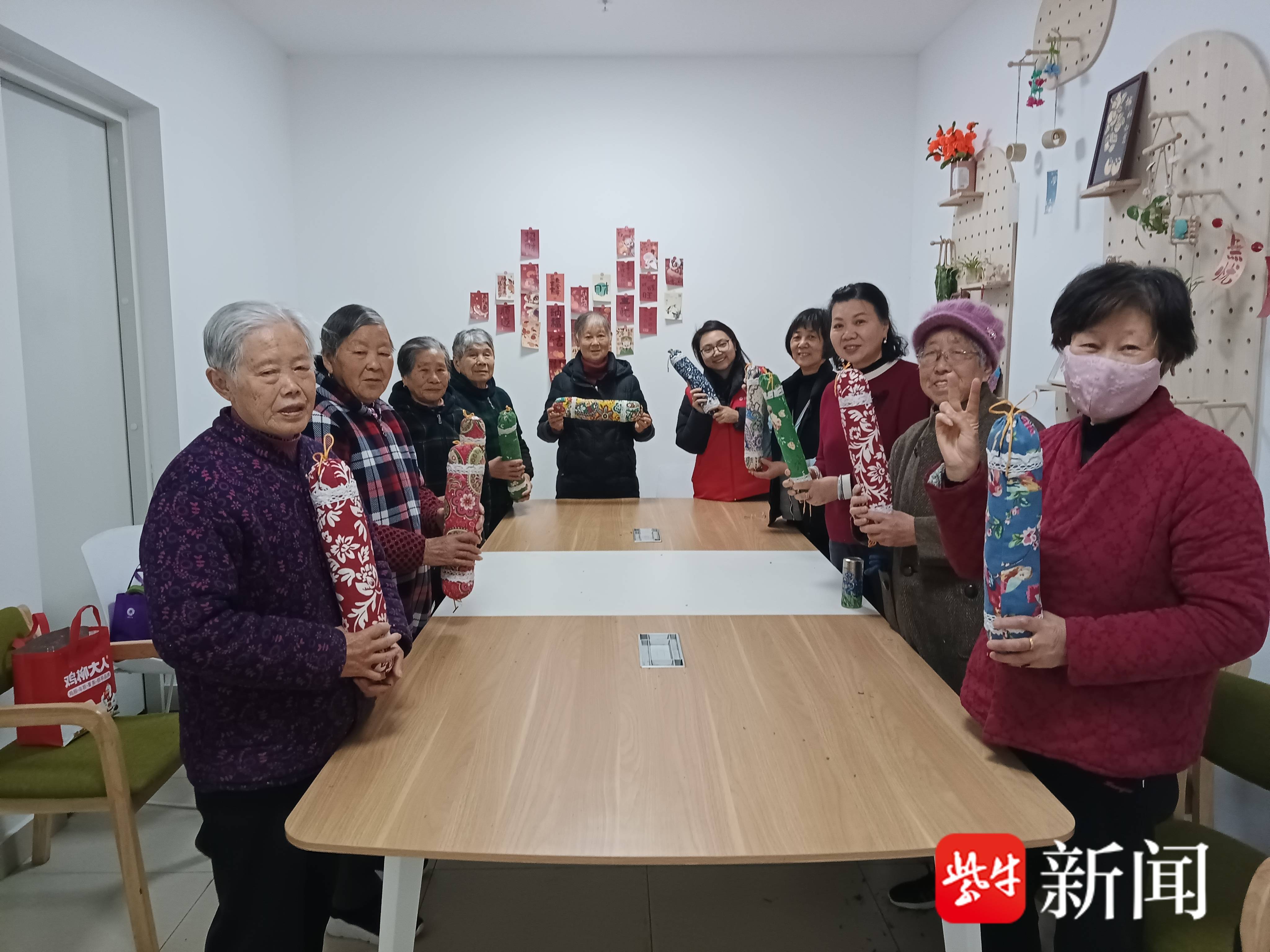 制作过程中,志愿者穿梭在老人之间,时而俯身指导缝制针法,时而帮忙填充艾草,时而陪老人闲话家常。“针脚密一点,艾草就不会漏出来啦!”“您看,这样收口更平整好看。”一句句耐心叮嘱,一次次暖心帮扶,让整个活动室充满了温情暖意。陈阿婆拉着小张的手感慨道:“平时一个人在家冷冷清清,今天和大家一起做做手工,聊着天,心里暖烘烘的。”