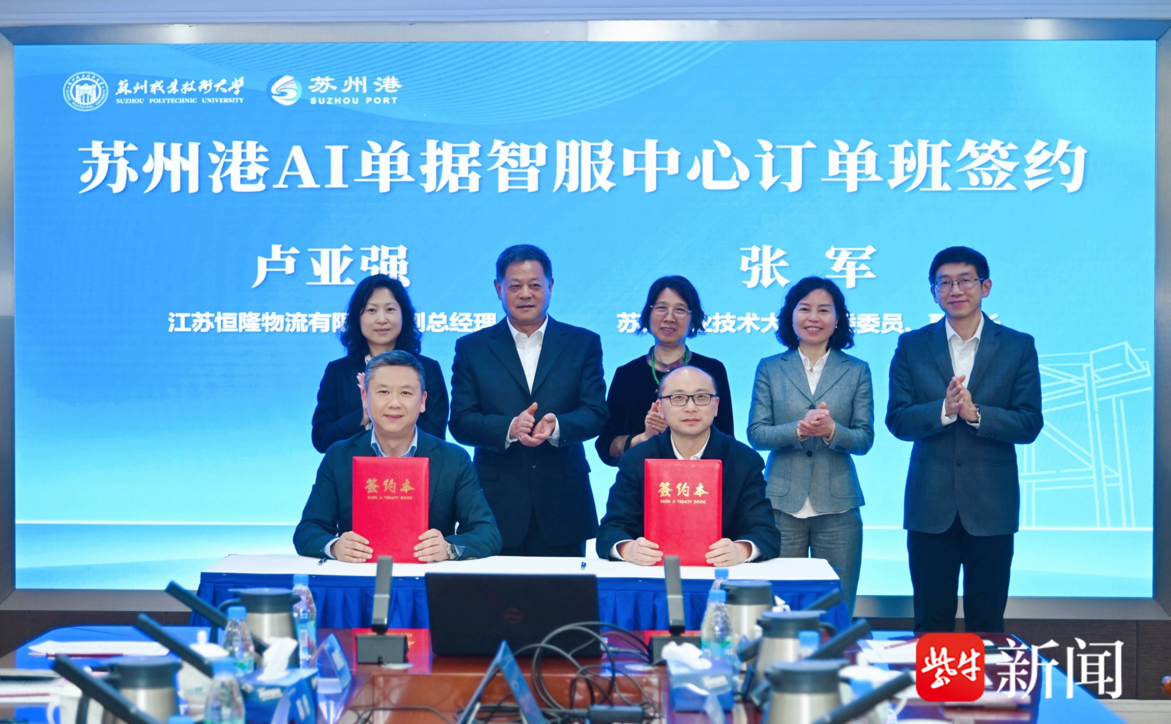 江苏恒隆物流有限公司副总经理卢亚强和苏州职业技术大学副校长张军代表校企双方进行订单班签约。
