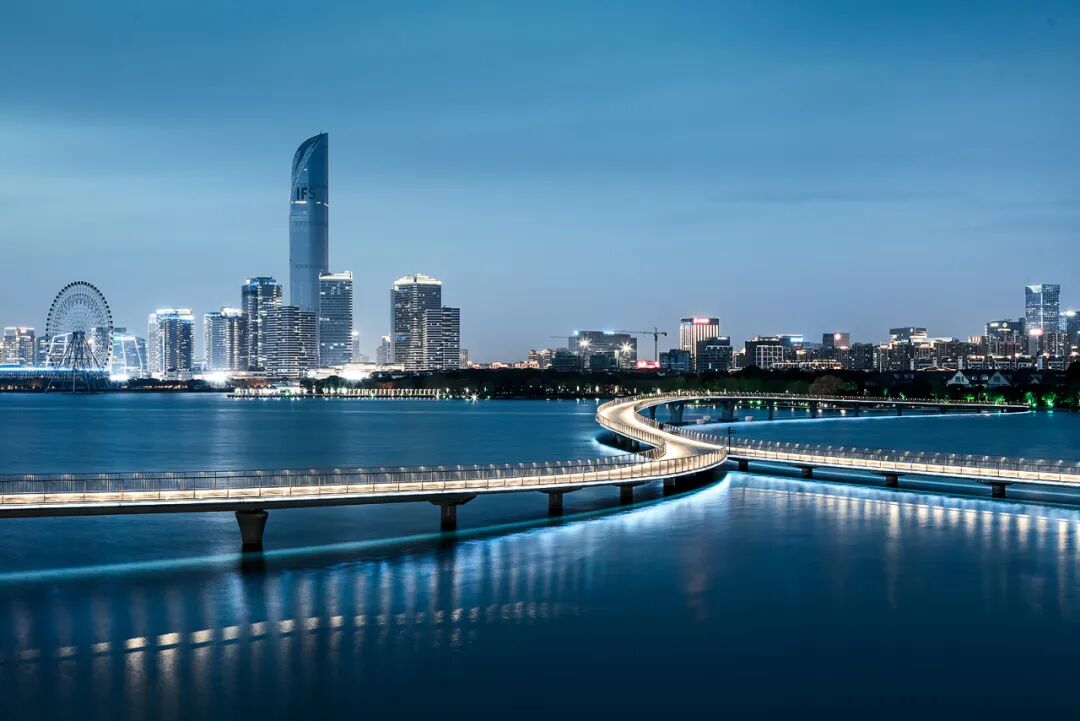 推荐点位:苏州环贸ICC mall、苏州国际博览中心、飞翔雕塑、苏州之眼、月光码头、金水湾栈桥、诚品书店、苏州文化艺术中心