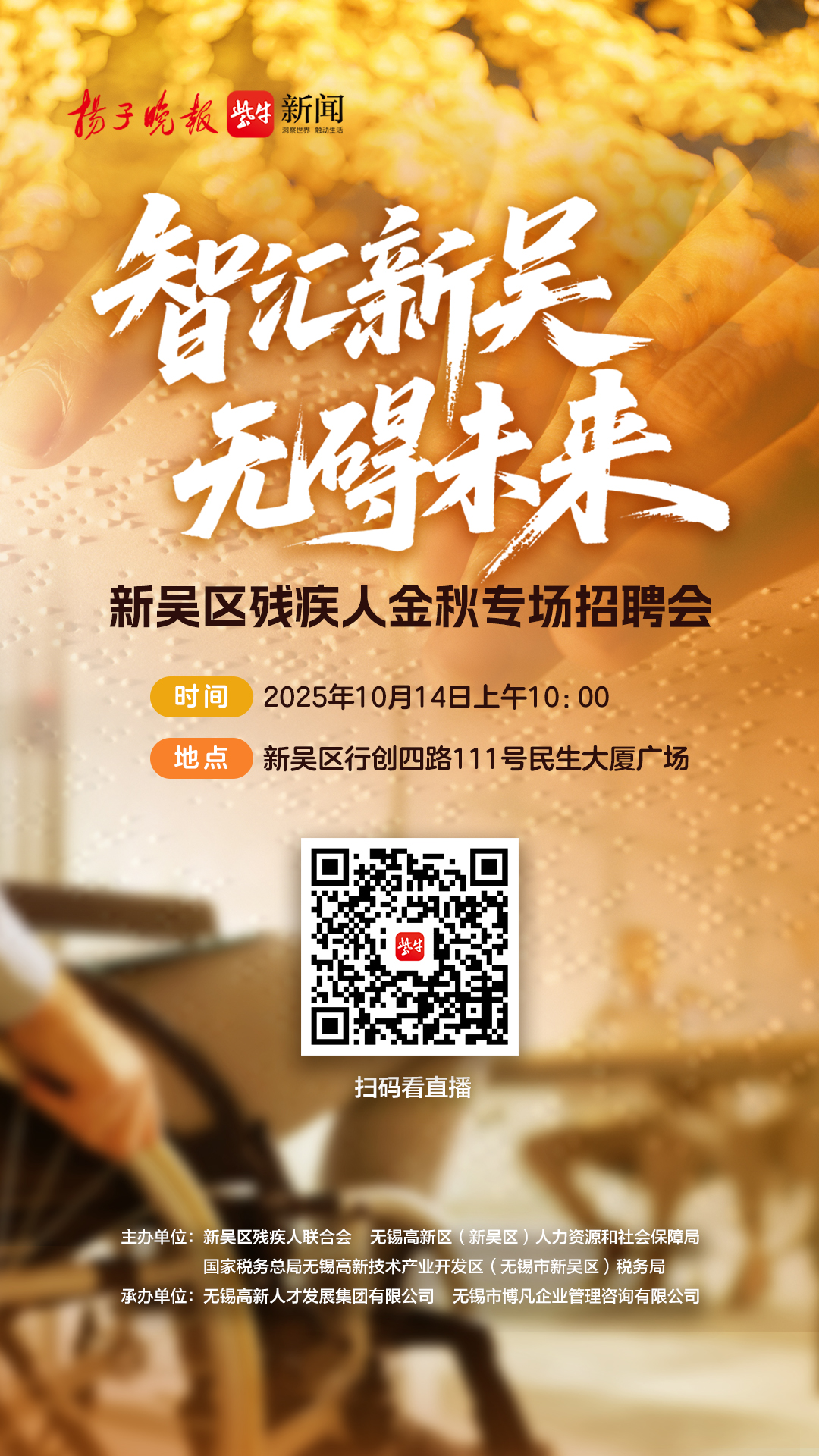 直播:“智汇新吴 无碍未来”无锡新吴残疾人金秋招聘会14日举行