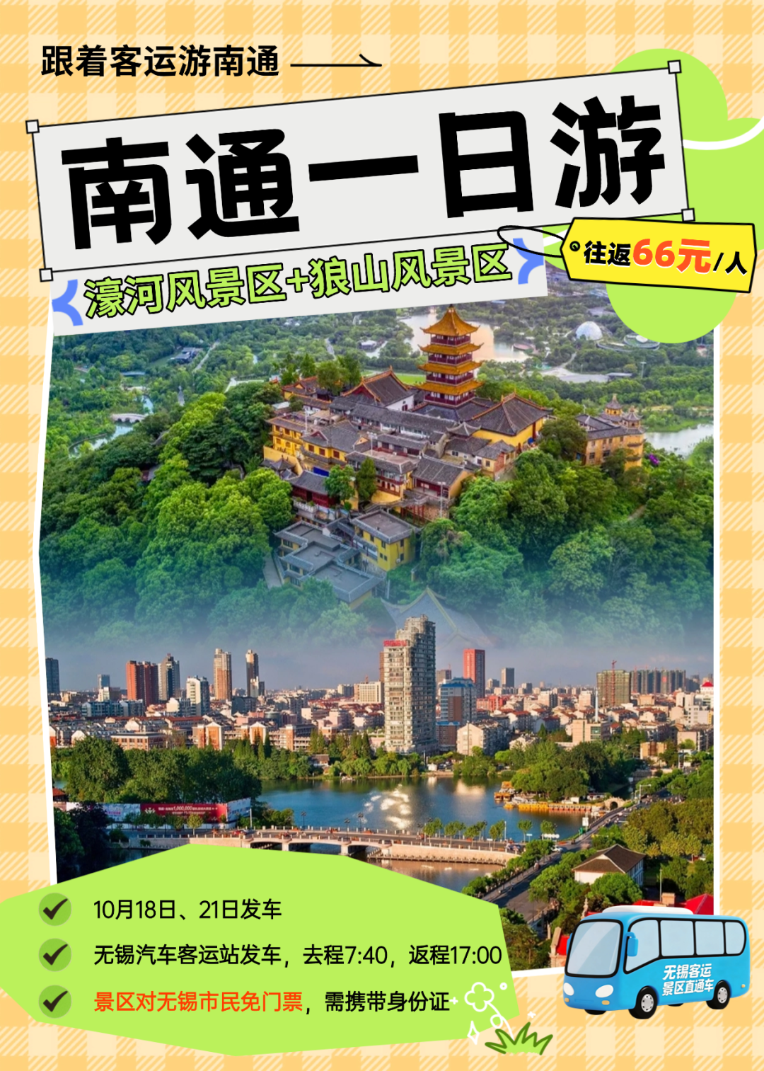 现上线南通濠河狼山一日游