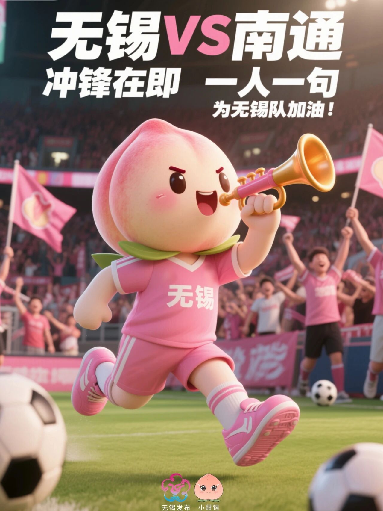 这个周末“苏超”半决赛战火将燃以敬意开场,以热血拼搏“硬核”水蜜桃必将全力以赴致敬对手,以礼相待驰骋赛场,以力争先荣耀无锡,初心不改战斗不息,壮志如山无论你是在绿茵场边、街头巷尾还是守在电视机或手机屏幕前我们都是无锡队的“最强第十二人”!一声呐喊,万里同频一句助威,热血共振无锡VS南通出征在即一人一句为无锡队加油!为无锡队祝福!