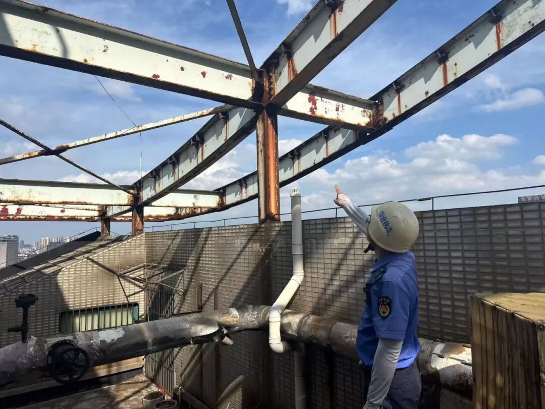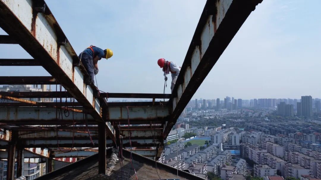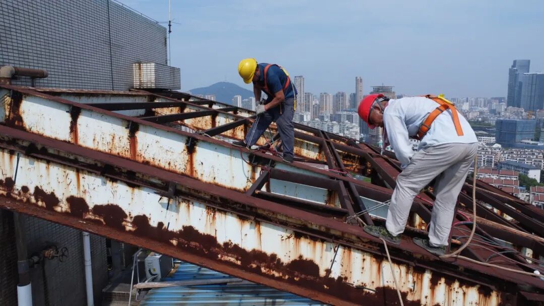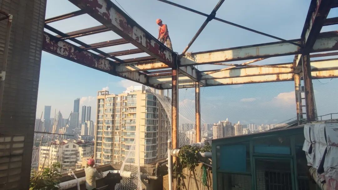 面对高空作业且地处闹区的复杂环境,严格监督施工方落实高空作业防护措施。施工队伍如同进行一场精密的“微创手术”,小心翼翼拆除锈蚀严重的部分,同时对保留结构进行加固和防锈处理,最大程度减少对居民生活的影响,确保了施工安全。当最后一道防锈漆涂刷完成,楼顶钢架焕然一新,既保留了熟悉的轮廓,又焕发出新的生机。