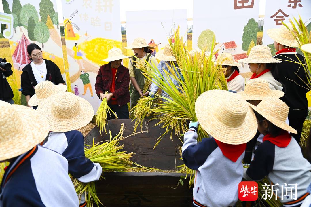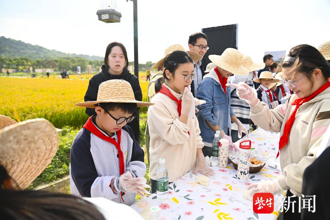 数字游民为乡村带来了“智”的活力,在地学子则为田野注入了“青”的脉动。“农耕体验日”巧妙地将音乐会搬进了稻田,用《稻香》的旋律、吉他的和弦、丰收土地的诗篇,完成了让人印象深刻的乡村美育新实践。来自南师大九龙湾分校与无锡商业职业技术学院的学生们,组成“1+1+1”劳动小组,亲历割稻、脱粒、扎稻草人、制作粢饭团等全过程,通过实践了解传统农耕流程,增强对农业生产的认知。这些生动瞬间被摄影展镜头悉数收录,成为摄影展中最具温度与活力的篇章。