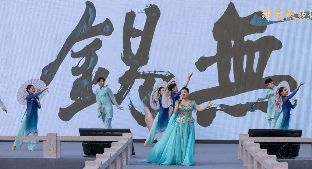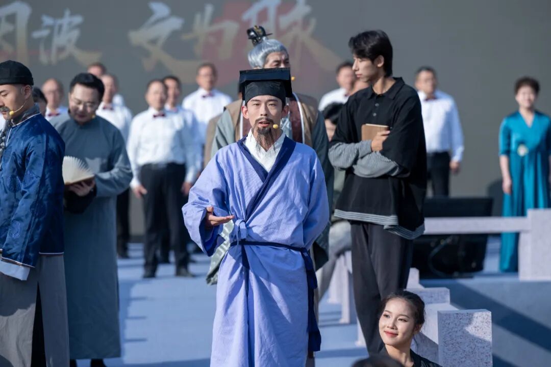 现场,大屏幕上,泰伯、李绅、顾恺之、徐霞客、钱锺书等无锡先贤“穿越”而至,共同吟诵无锡源远流长的历史。
