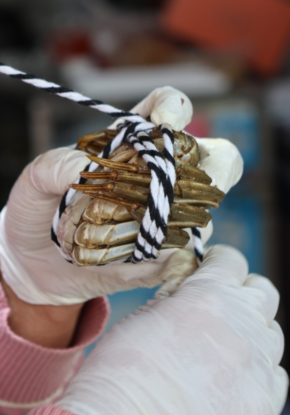盛阳水产批发市场的交易数据显示:10月22日,2两公蟹批发价在25元/斤至27元/斤,2两母蟹为43元至46元/斤;2.5两公蟹在28元至30元/斤,2.5两母蟹达50元/斤至55元/斤;3两公蟹在33元至43元/斤,3两母蟹达70元/斤至80元/斤。