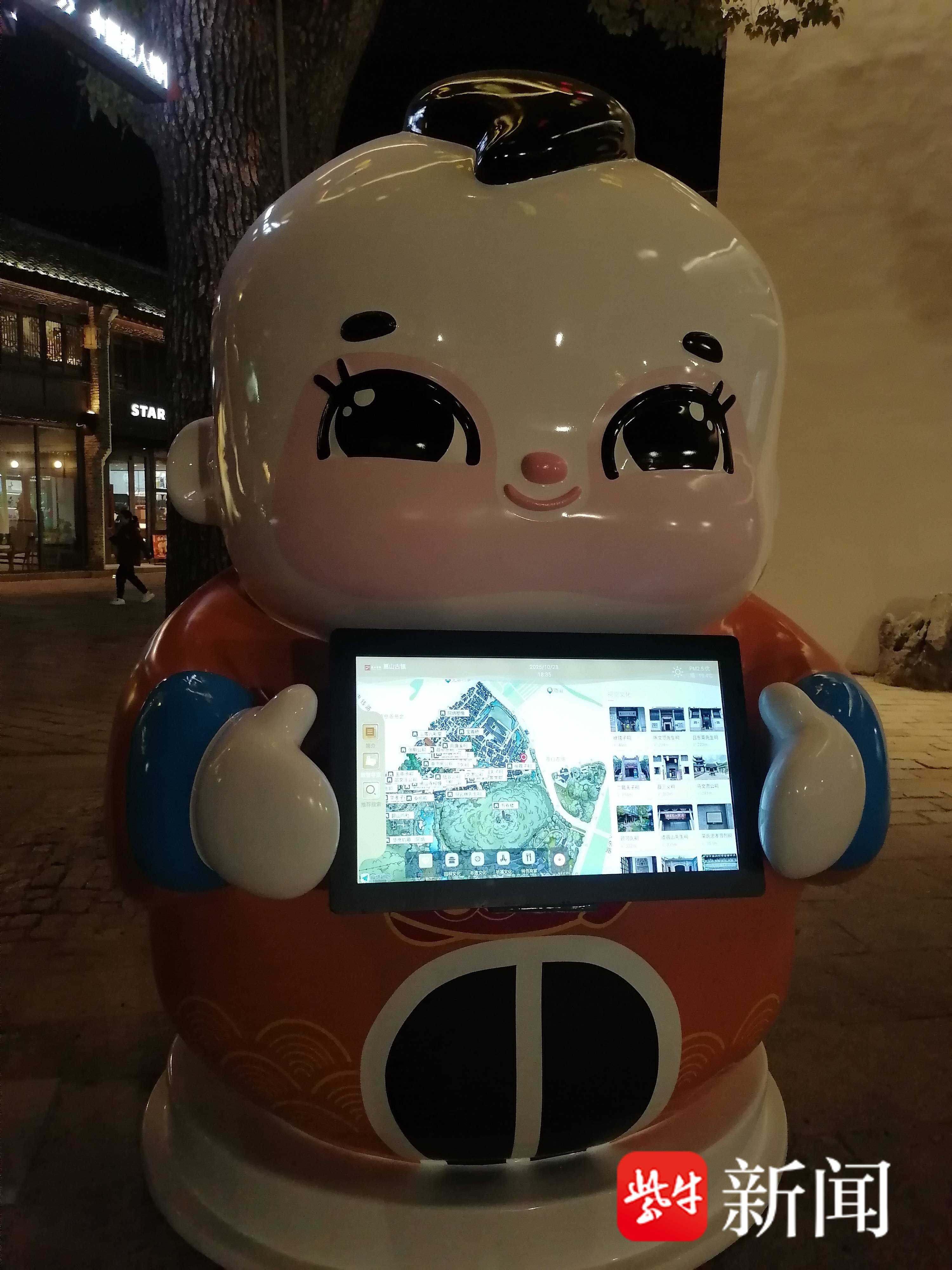 与此同时,在“智慧转臂”的旁边,无锡标志性的阿福阿喜非遗IP服务机器人则“怀抱”智慧电子屏,与游客互动,讲解相关景点的看点和特色,图文并茂,一目了然,甚至还自带语音,对盲人等也是非常友好。工作人员还告诉记者,目前,惠山古镇景区在古镇景区和隔壁的映月里分别布置了上述两个IP服务机器人,与还可以进行定位、一键求助的“智能转臂”一起,为广大来锡旅客服务。“这些都是新上的设施,通过AI赋能,能更好服务游客!”