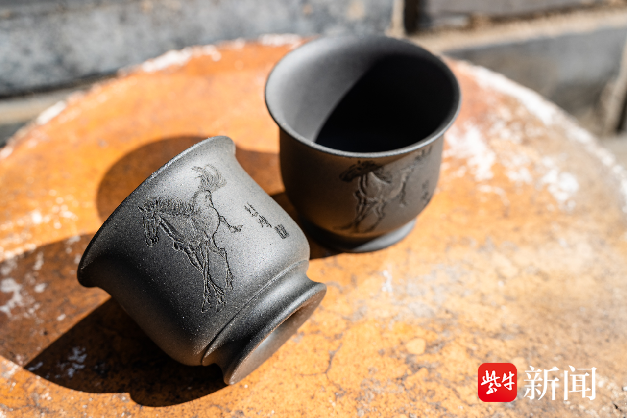 当一件件紫砂陶器、定制的紫砂马年文创、悲鸿紫砂杯从窑洞里捧出后,呈现出“出窑万彩”的奇幻效果,现场只剩下一片“哇”声。