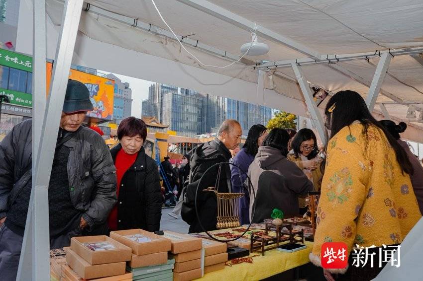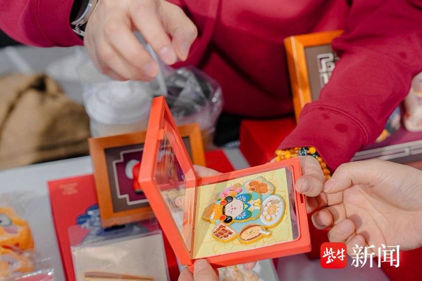 “这个看着您解得很快,但是我不行,解不开呢!”活动现场打造新春快乐场景,童趣互动、年味打卡、惊喜好礼不断。在“非遗”市集——“九连环”的摊位上,摆放着众多九连环,有大人有小孩,都在拿着九连环试图解开套环,但往往铩羽而归。工作人员鼓励说,这些本就是中国古代版的益智玩具,也是休闲之物,其实也不难,就是要多接触和练习。“可以买一些,这里面还可以扫码看视频,有教程,挺有趣的!”