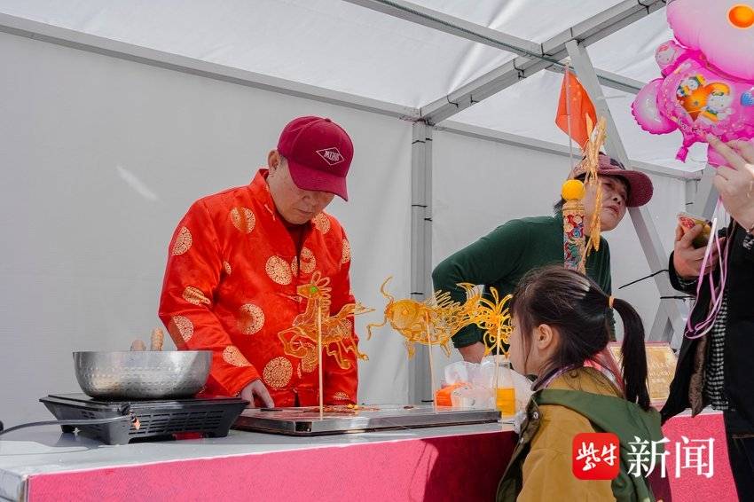 而在无锡剪纸、无锡精微绣等摊位前,同样有众多的市民游客在围观。还有脚踏年糕、糖画和甜酒酿等,传递“非遗不只是看的、听的,是可以上手摸、亲口尝、带回家的”的理念。舞台之上,锡剧婉转,水袖飞扬间唱腔划破长空;评弹《无锡景》软软糯糯唱尽山水柔情;舞蹈《渔篮花鼓》《幸福吉祥》踏着欢快的节奏,把新春的喜庆与祝福送到每位观众眼前。而伴随着主持的喝彩,“非遗好运抽奖”则把现场的欢呼声推向了高潮。