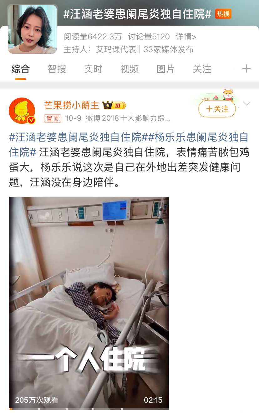 近日,#杨乐乐患阑尾炎独自住院#的话题登上热搜,引发网友热议。据相关媒体信息,汪涵妻子杨乐乐发视频称在外地出差拍摄时突发剧烈腹痛,痛至跪地不起被紧急送医。此前数月她已持续腹痛,但误判为生理期问题未重视,导致阑尾炎恶化,腹腔内形成“鸡蛋大”的脓包。