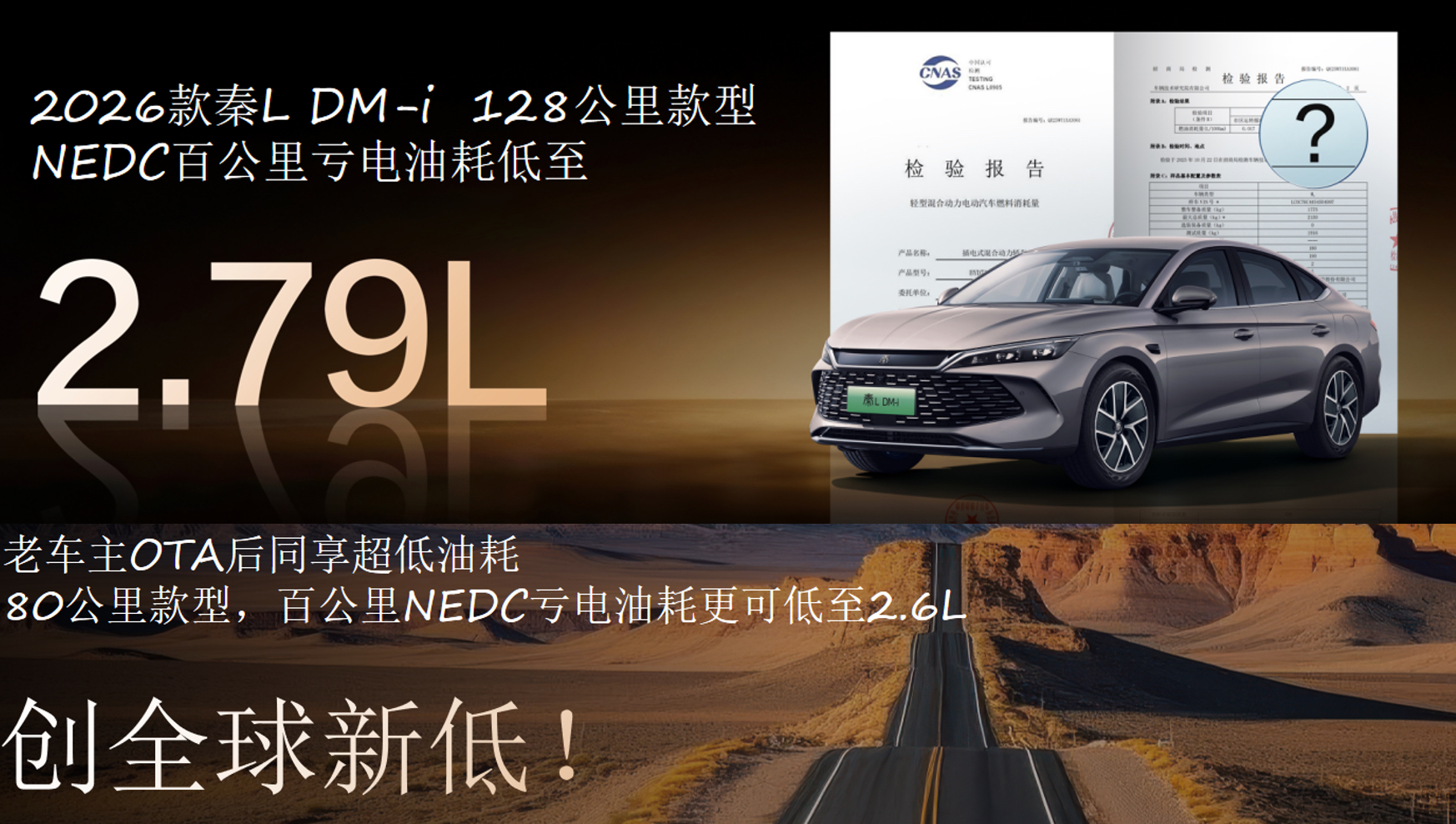 舒适性配置上,新款秦L DM-i搭载第五代DM技术,它的续航创全球轿车油耗新低,纯电续航提升至128km,综合续航达2148km,搭配集成式电子怀挡,释放中控空间,显著提升了驾驶舒适性。