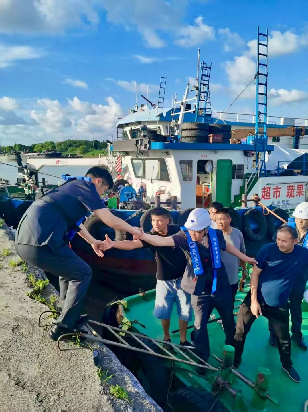 南京海事法院充分发挥专门法院专业优势,深化江苏“海地”交叉执行创新工作机制,集约高效办理涉船处置案件。7月8日,该院执行干警赶赴南通市海门区、崇川区两地,高效完成对4艘船舶的扣押工作。图为法院干警在海门港登船实施扣押。