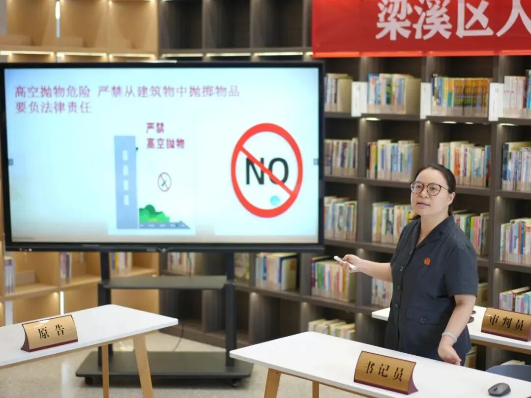 近日,无锡市梁溪区人民法院干警前往辖区梁中社区,巡回审理一起高空抛物案。部分区人大代表、物业公司代表、社区居民代表等近40人旁听庭审。随后,法官结合庭审案例进行普法宣讲。