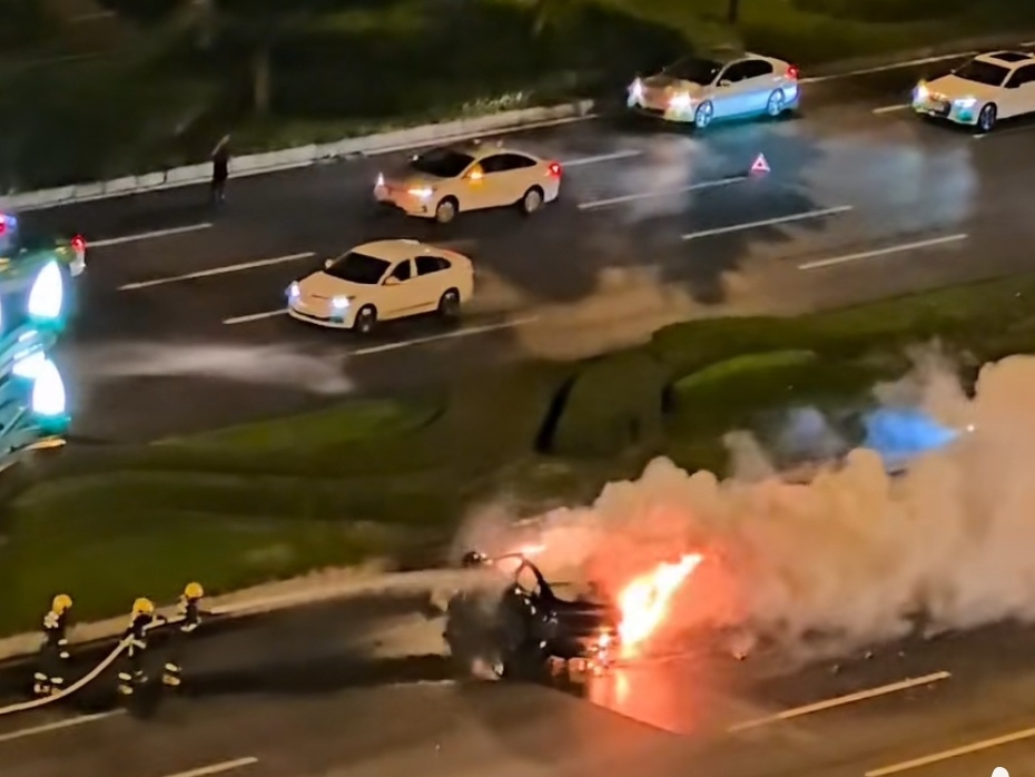 一名现场目击者则介绍说,自己是跟消防车一起到的,大概是凌晨3点半,最后是用切割机切开的车门,可人还是没有救回来。另一位目击者则称,这辆新能源小汽车车速比较快,好像是和一辆网约车撞上了,然后从绿化带直接飞到对向车道,之后就起火了。