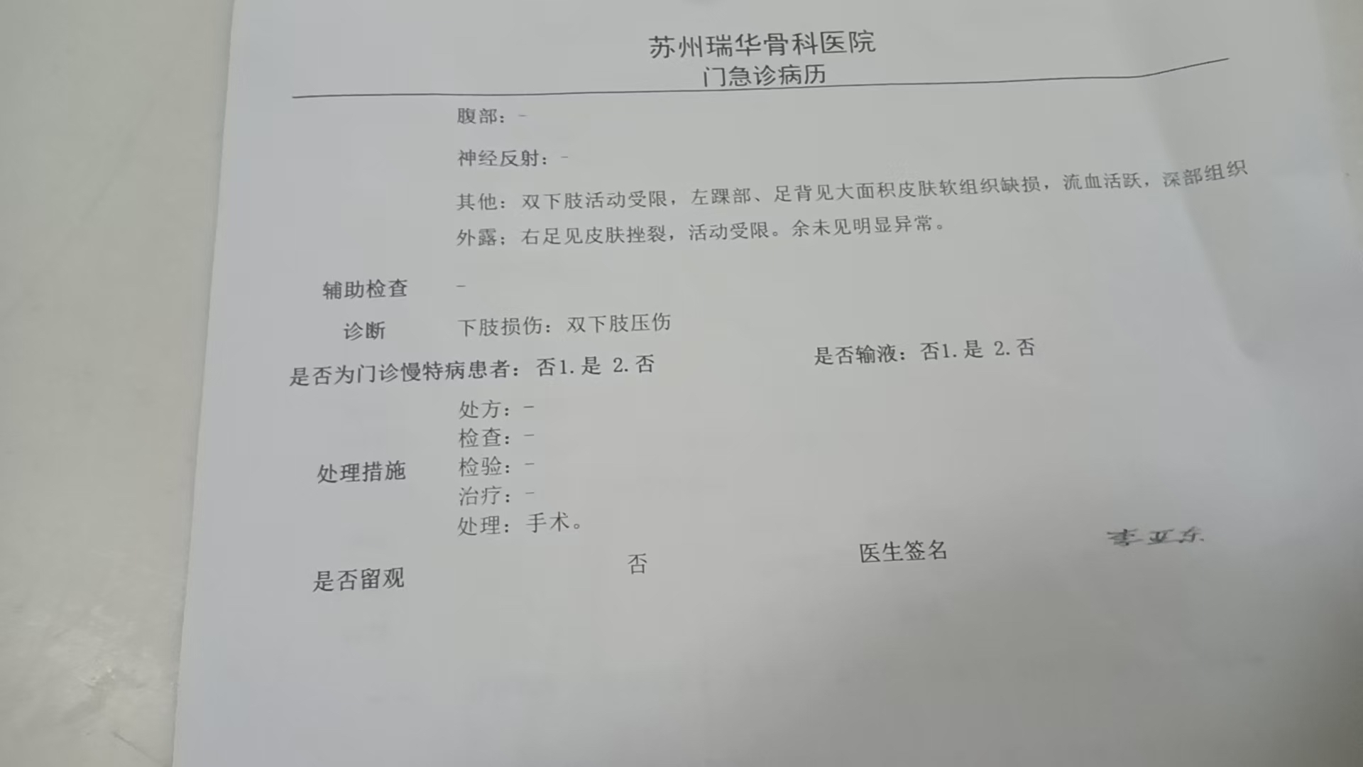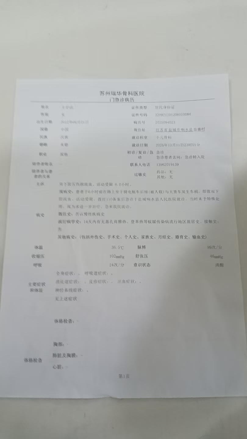 事故发生后,宇洁先被送到响水县人民医院,可医生一看伤势就摇了头:“脚伤太严重,我们治不了。”紧急转往盐城市第一人民医院后,检查结果让全家的心凉了半截:左脚脚面皮肤完全缺失,筋断骨裂,右脚大拇指骨折血肉模糊,必须尽快做连接脚筋和精细的植皮手术,当地医院的技术达不到要求。