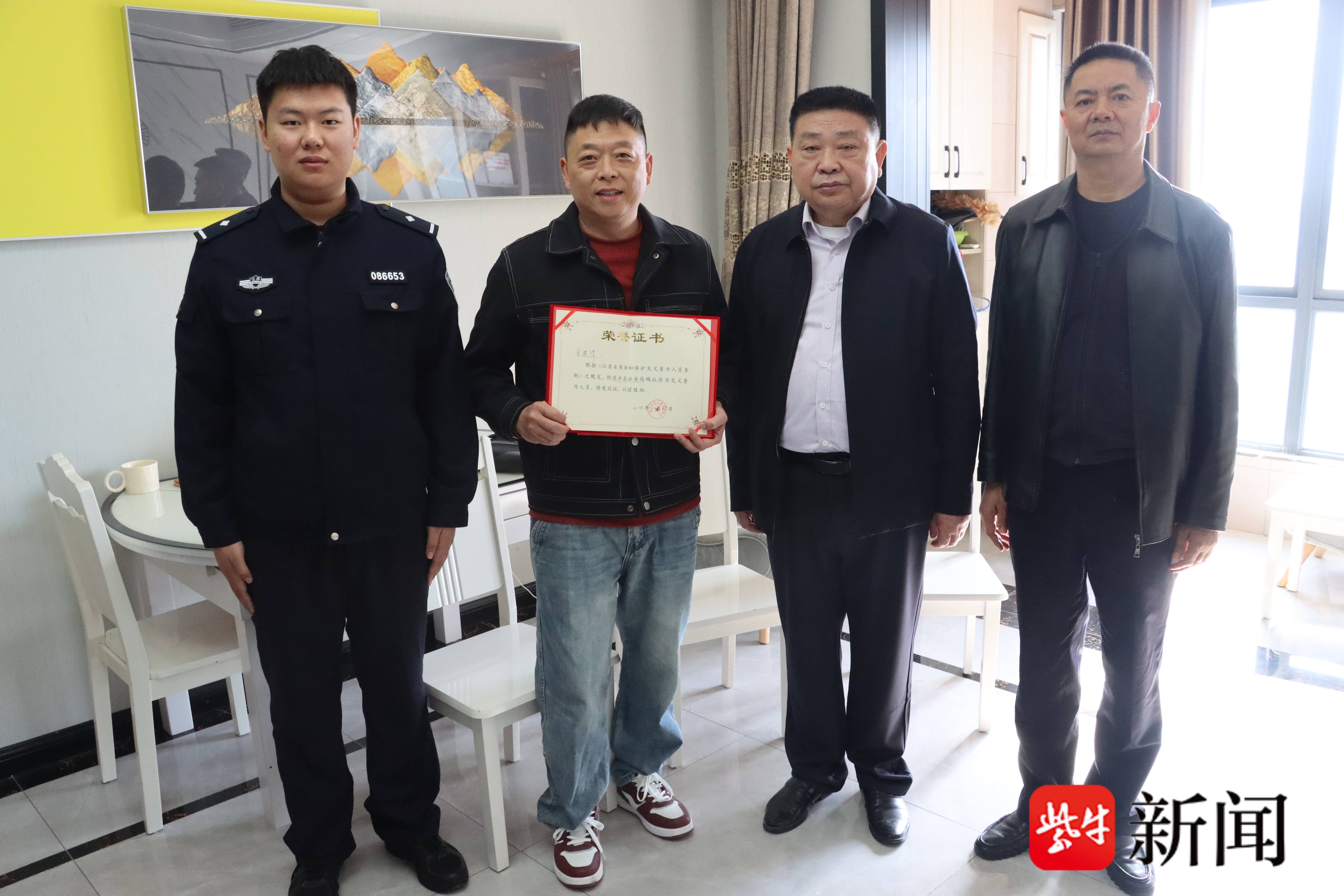 扬子晚报网10月30日讯(通讯员 吴哲邦 陈虎 记者 朱鼎兆)10月29日,涟水县见义勇为基金会秘书长朱爱军一行专程前往涟水县开元名都小区,为竭尽全力勇救落水少年的涟水县红窑镇安监办工作人员宋建华送奖上门。