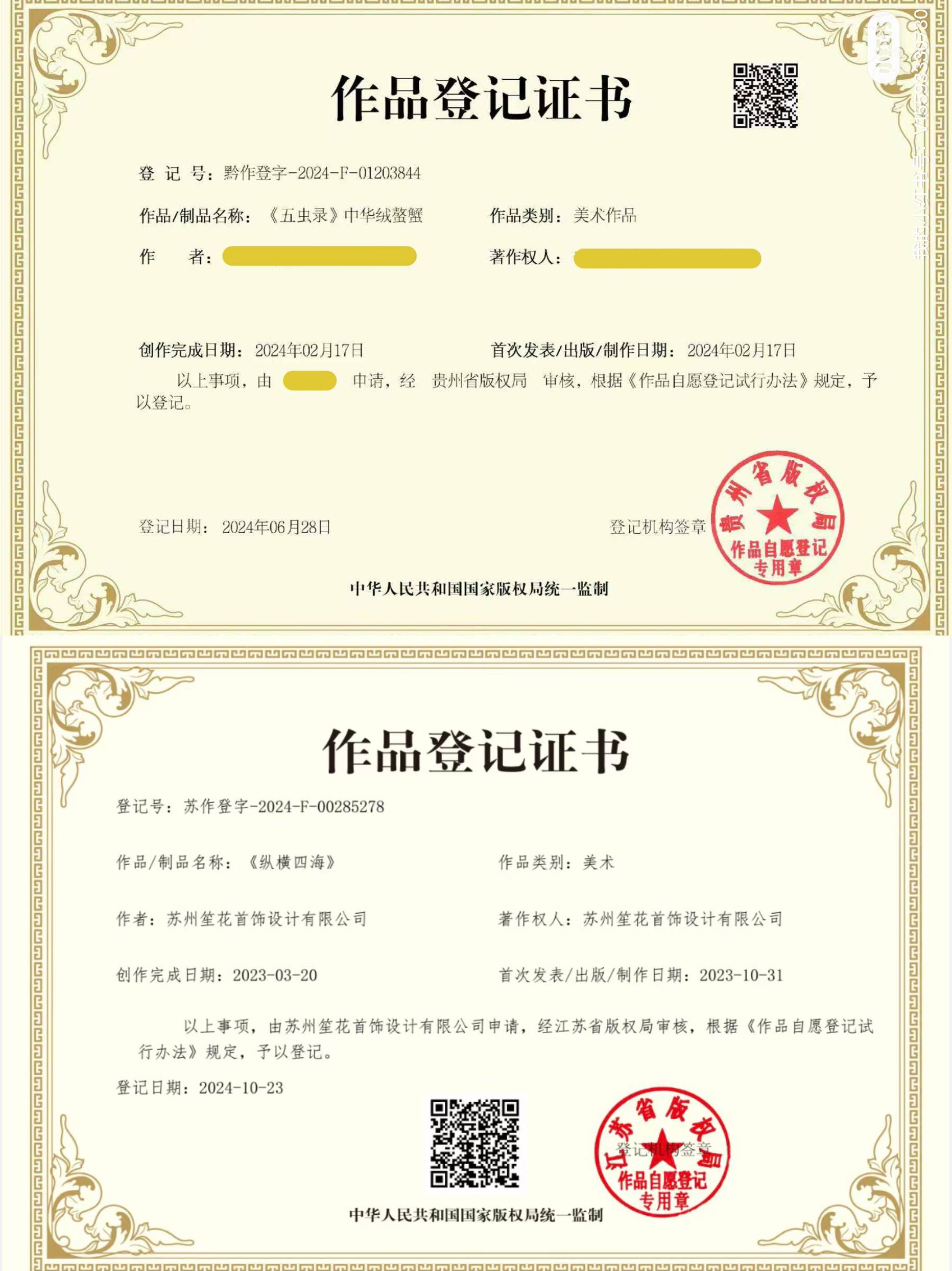“2024年就有朋友把对方的作品发给我们看,内部结构和外部纹理细节都跟我们的一样,比如我们比较风格化的毛流质感、蟹壳上的凹凸点,几乎都一样。因为模型的细节部分是我个人负责的,所以我对于它的外形是很敏感的。我们的作品登记日期是2024年6月28日,早于对方的2024年10月23日。但那之后因为忙于设计,这件事情就不了了之了。”二六还提到,工作室和设计师也曾尝试在社交平台与吴文胜方进行沟通,但没有得到对方的正面回应。