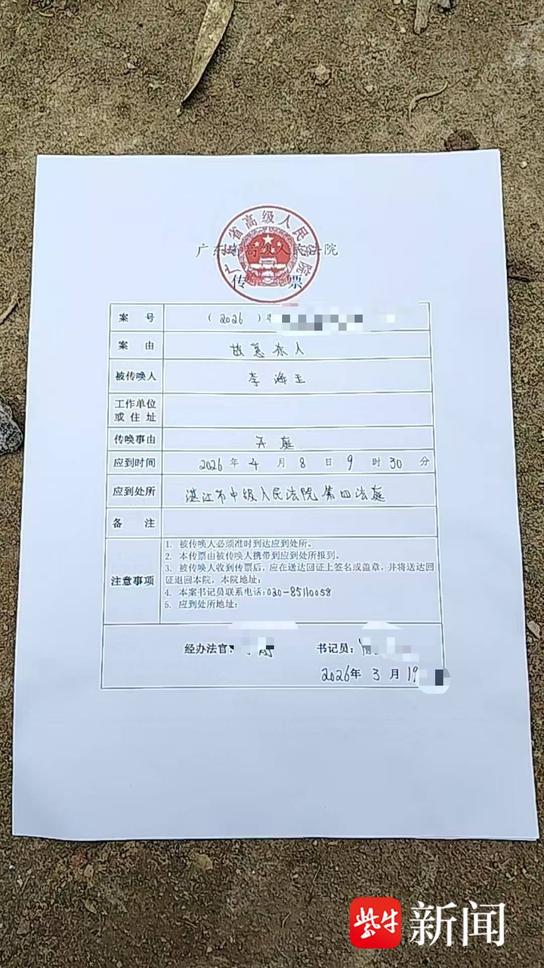 2024年11月1日,此案一审在湛江市中级人民法院开庭。